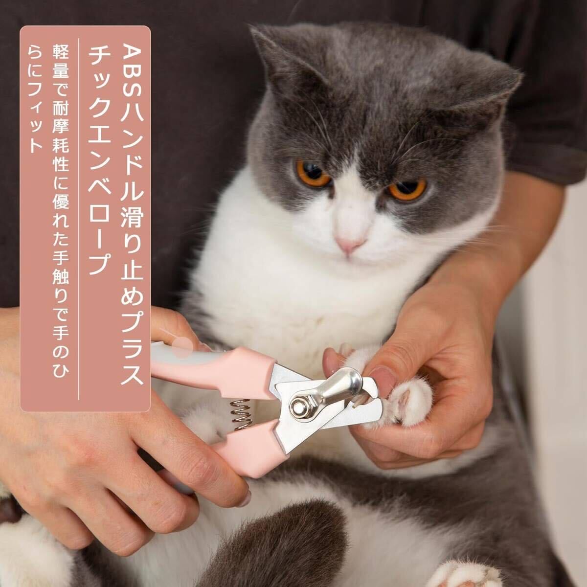 EDlikeペット 爪切り 猫爪切り 犬 爪切り 猫 爪切り深い爪防止 猫 爪切り 安全 固定リング設計、簡単 爪切り、ゴム滑り止めハンドル、小型中型猫犬 爪切り (ピンク)