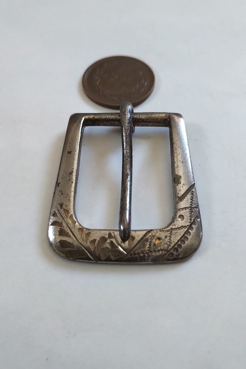 USED 品ですが当時モノとしては美品です。取り付け幅は23ミリです。真鍮にクロームメッキを施した古いベルト美錠です。職人さんによる手彫りの模様が入っている一点物です。手作りベルト等を手掛けるレザービルダーさんにもお薦めです。NC /NR でお願いします。