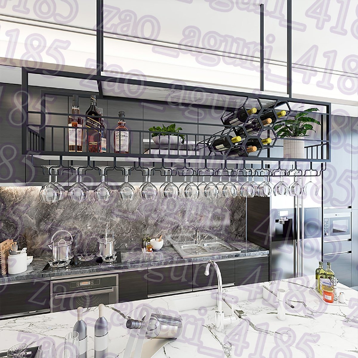多機能天井棚: ワイングラスホルダーはシンプルですが実用的なデザインです。さまざまな装飾を飾る陳列棚として、未使用スペースを有効活用できます。居間、キッチン、寝室、食堂、書斎、喫茶店などにご利用いただけます。
