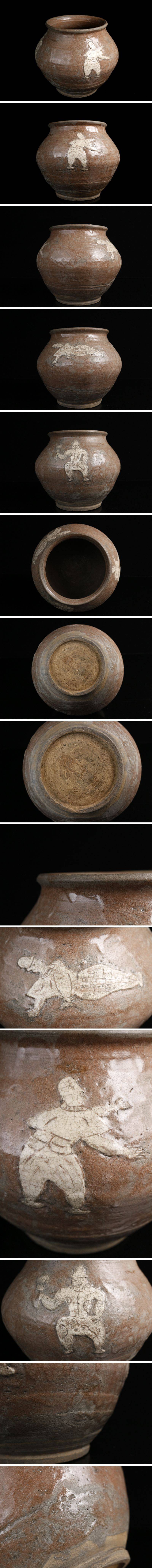 * * * 商品詳細 * * * ここでしか出逢うことのできない唯一の美をご紹介させて頂きます。 素朴な肌地に南蛮人が描かれた雰囲気のある壷です。 それぞれ描かれ南蛮人は羽根つきをしたり、 昼寝をしていたりとシュールな一面が垣間見え 異国情緒を落とし込んだ逸品となっております。 この機会に是非、お手元にてご堪能下さい。 ■サイズ/横25㎝×高21㎝ ■状態/ スレ、小傷、汚れ、シール跡がございます。 ※写真にてご確認、ご了承の上ご入札下さい。