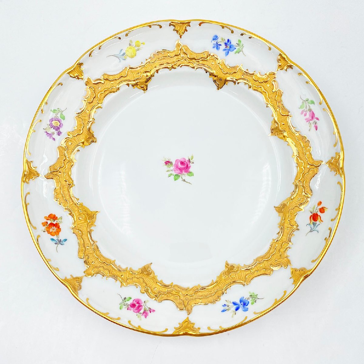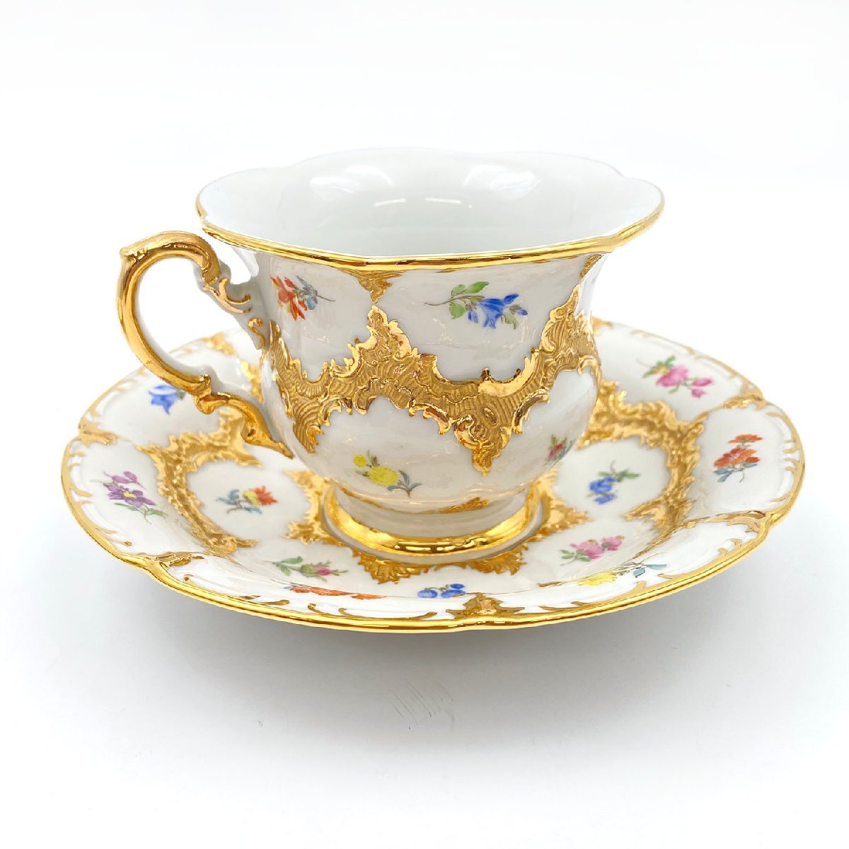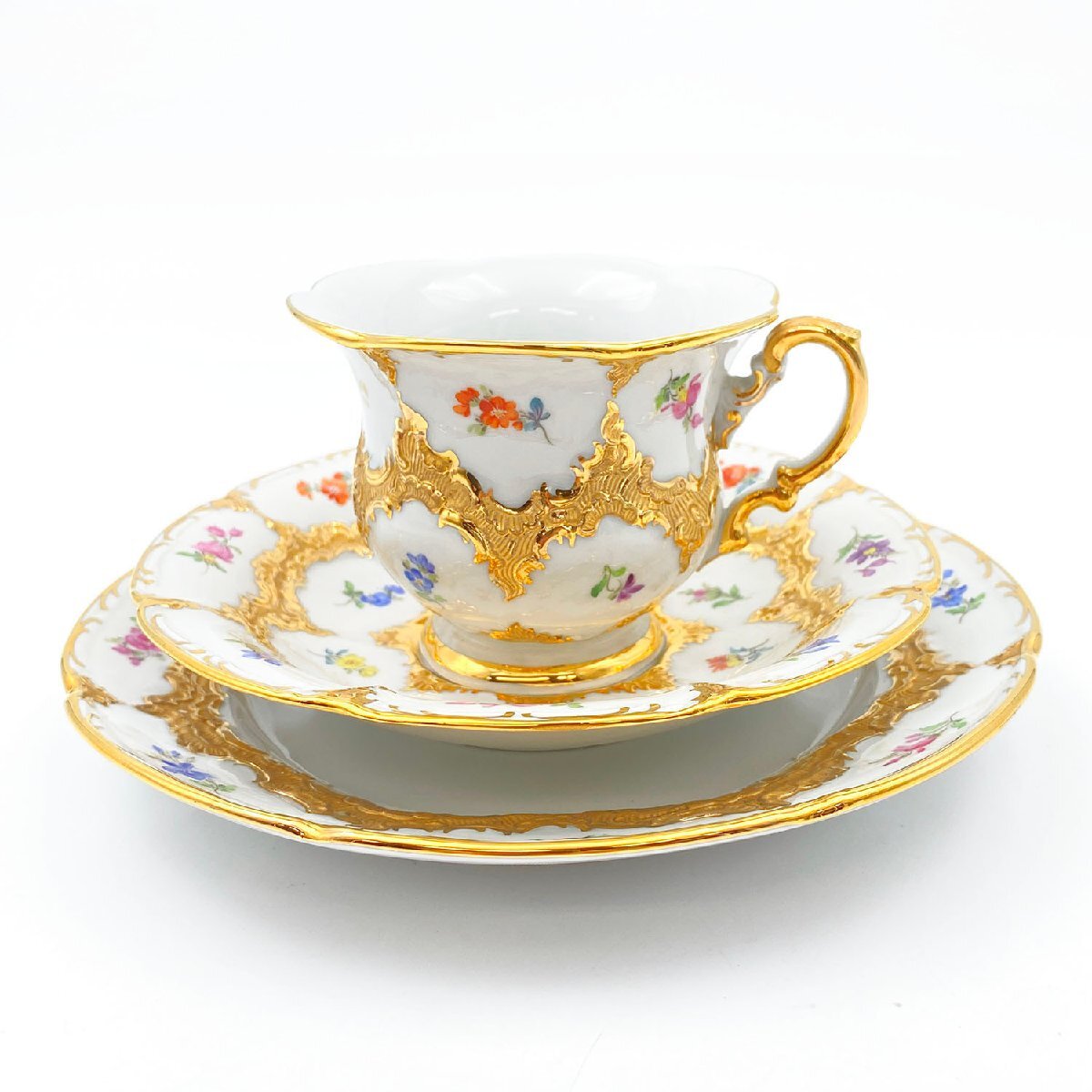 商品名 | ②Meissen マイセン Bフォーム 宮廷の小花 グランツゴールド 金彩 ホワイト カップ&ソーサー/プレート 20cm トリオ 08-4098769 |