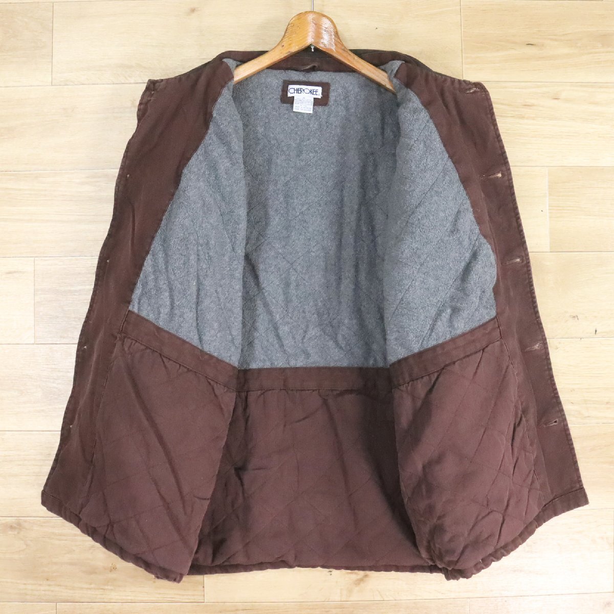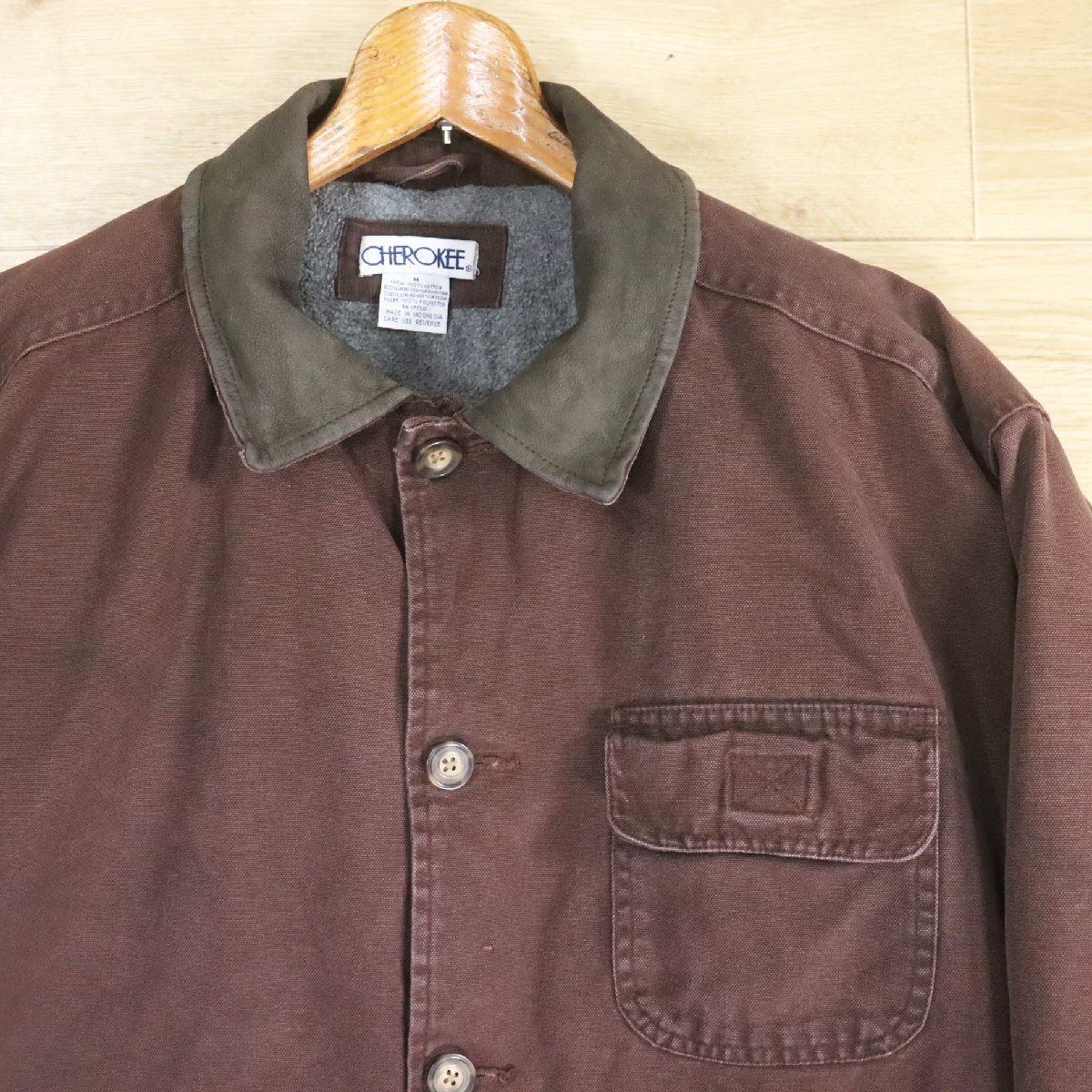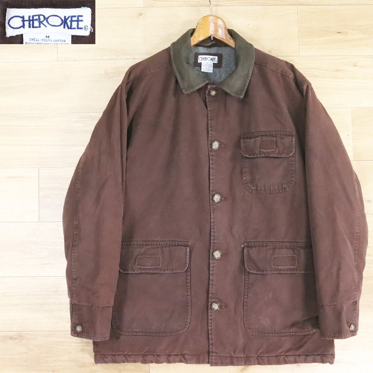 H1T/Y7.28-5 アメリカ古着 CHEROKEE 襟レザー ハンティングジャケット アクティブジャケット コットン ダックジャケット M