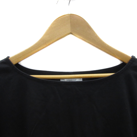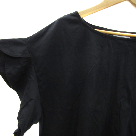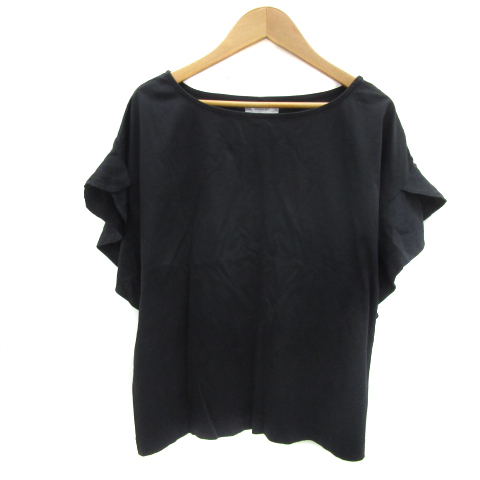 オペークドットクリップ OPAQUE.CLIP カットソー 半袖 ラウンドネック 無地 フリル 40 L 黒 ブラック /YS13 レディース