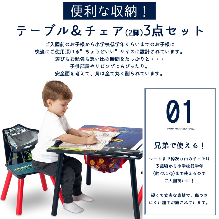 | 仕様 | ご入園前のお子様から小学校低学年くらいまでのお子様に 快適にご使用頂ける”ちょうどいい”サイズに設計されています。 遊びもお勉強も想い出の時間をたっぷりと・・・ 子供部屋やリビングにもぴったり。 センターのフタを開けると おもちゃも絵本も『PON!』かんたんお片づけ完了! 安全面を考えて、角は全て丸く削られています。 |