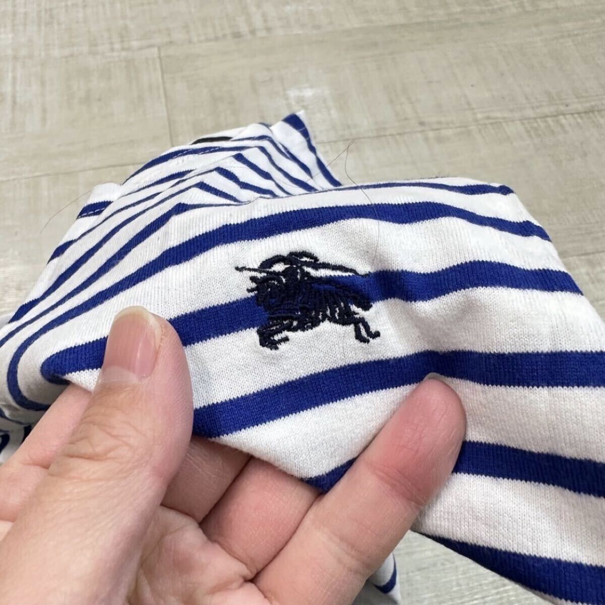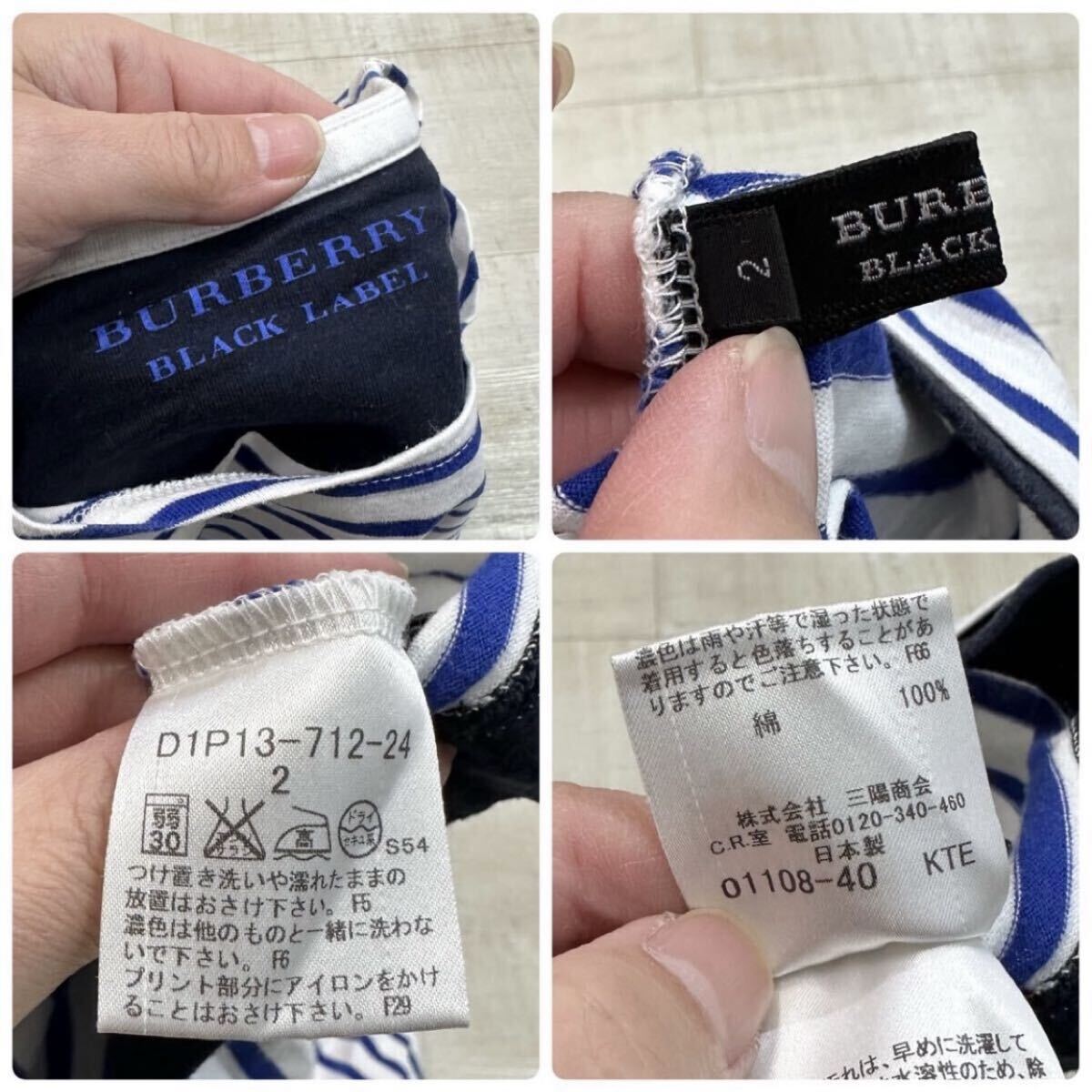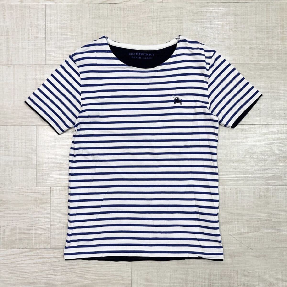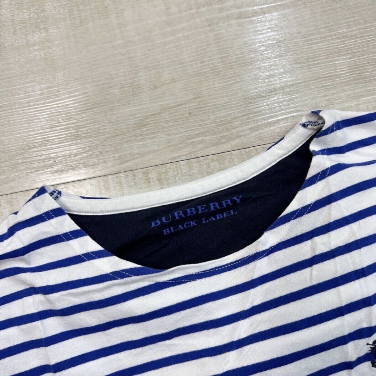BURBERRY BLACK LABEL バーバリー ブラック レーベル レイヤード ボーダー Tシャツ 刺繍 カットソー ホワイト x ブルー 系 サイズ 2 701