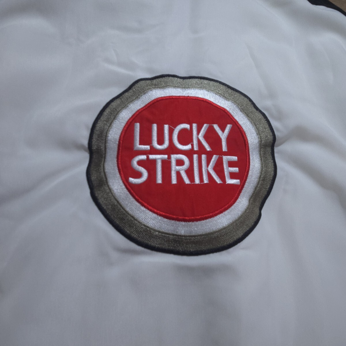 背面には大きなラッキーストライクロゴが施され、当時のスポンサー仕様を忠実に再現しています。