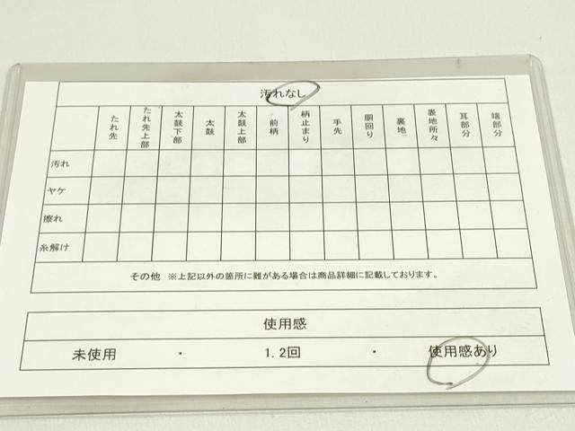 | 【正絹】 詳細に関しましては、画像をご確認ください。 本場筑前博多織は、 福岡県福岡市博多区やその周辺で生産される絹織物です。 仏具のひとつである独鈷、華皿を基にした幾何学模様が織られています。 江戸時代に筑前藩主だった黒田長政が幕府への献上品にしたことから、 博多献上、献上博多とも呼ばれます。 横畝が際立って見える経畝織りという織りになっています。 30〜60本の細い経糸を使うため、こしやはりがあり、 地合が硬く、光沢感があります。 きちんと締まり、くずれにくい、締めやすい帯といわれています。 大変上質な逸品になります。 お安く出品致しますので、是非この機会にいかがでしょうか?