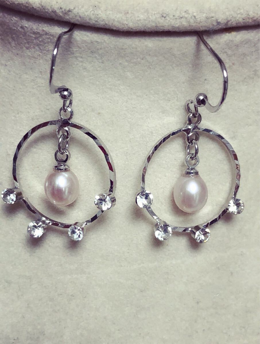 ●商品名:天然淡水真珠/ダイヤ入ホワイトパールピアス