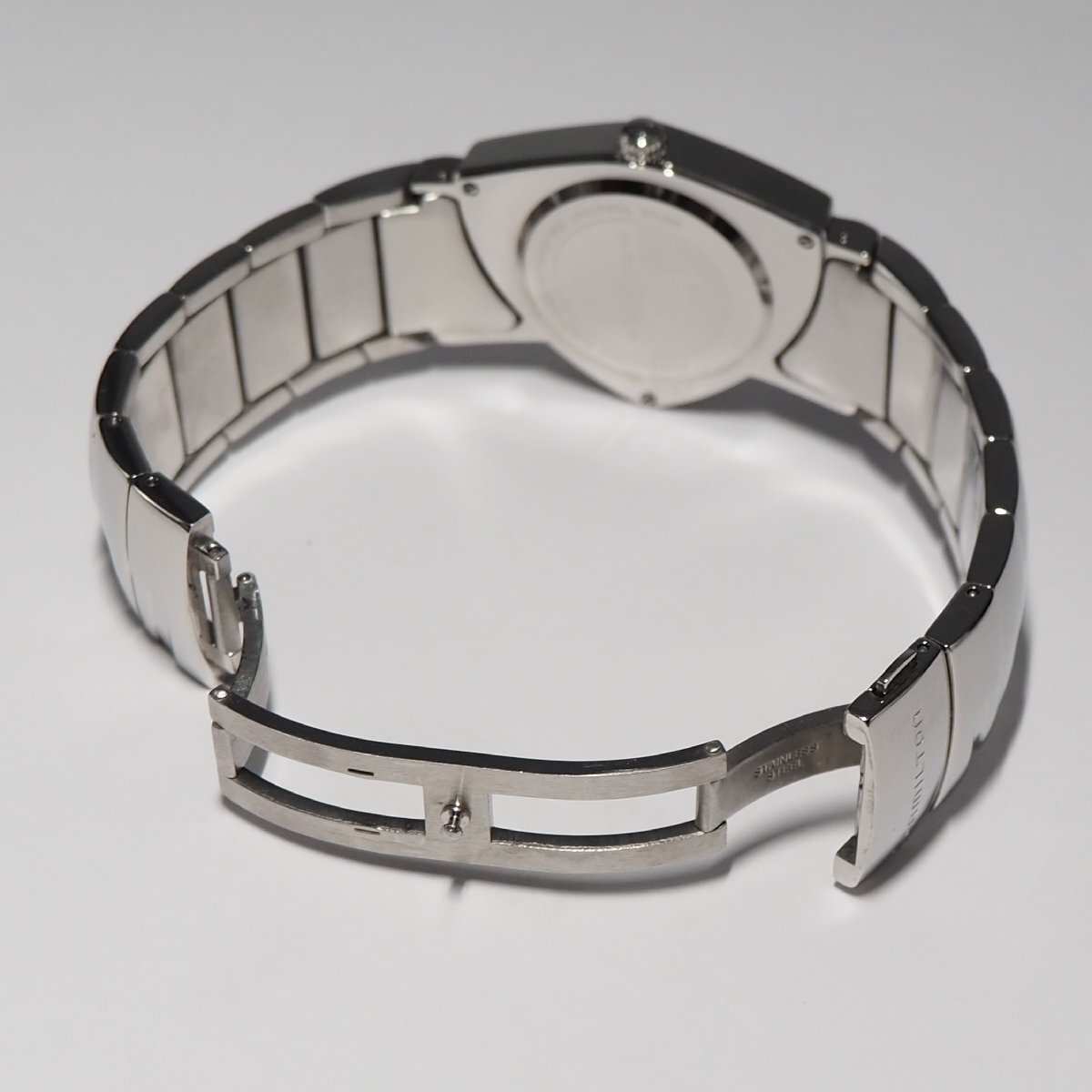 ハミルトンベンチュラ(VENTURA)は1957年に世界初の電池式腕時計として登場しました。 特徴的な三角形のケースで未来的かつ大胆なスタイルが魅力です。 特に有名なのはエルヴィス・プレスリーが愛用していた事で、映画『ブルー・ハワイ』でも着用しておりました。 現在のベンチュラシリーズはオリジナルデザインを踏襲しつつ、クラシックな魅力とモダンな技術が融合した個性的な腕時計です。 稼働品で除菌クリーニング致しておりますのですぐにご使用いただける状態です。 ☆管理番号:H276 ☆稼働品 ☆クリーニング (超音波洗浄+エタノール除菌クリーニング) ☆防水:5BAR ☆ムーブメント:クォーツ ☆素材:ステンレス ☆電池交換:稼働品のため電池交換致しておりません。 【サイズ】 ◇ケース幅約31mm×45mm(リューズ含まず) ◇厚さ約8mm ◇腕回り約:160(余りコマが4個ございますので38mmくらい大きくできます) 【カラー】 ◇文字盤:ブラック ◇ケース:シルバー ◇ベゼル:シルバー ◇ベルト:シルバー 【状態】 ◇SA ☆全体評価:全体的にはキズはほぼ無く未使用に近い状態です。 ☆ケース:キズなし ☆ベゼル:キズなし ☆ガラス:キズなし ☆裏蓋:キズなし ☆ベルト:キズなし ☆その他特記事項:- 【付属品】 ◇外箱 ◇内箱 ◇冊子 ◇カード ◇余りコマ×4 ※公安委員会の古物商許可証の元古物市場(コメ兵、ブランドオフ、エコリング等)にて購入したものです。 全て【正規品保証】致します。 過去1度も経験はございませんがコピー品であった場合返品返金対応をさせていただきますので安心してご購入下さい。 |