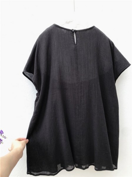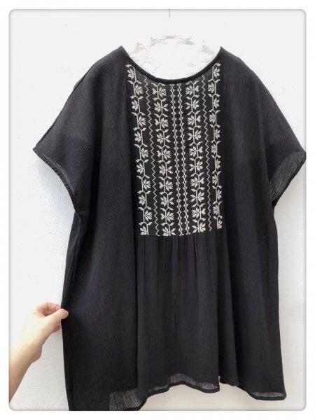 ps 0706 薄手 刺 チュニック トップス フリーサイズ 綿100% 花柄 ナチュラル 通気性肌触り抜群 ゆったり ブラック