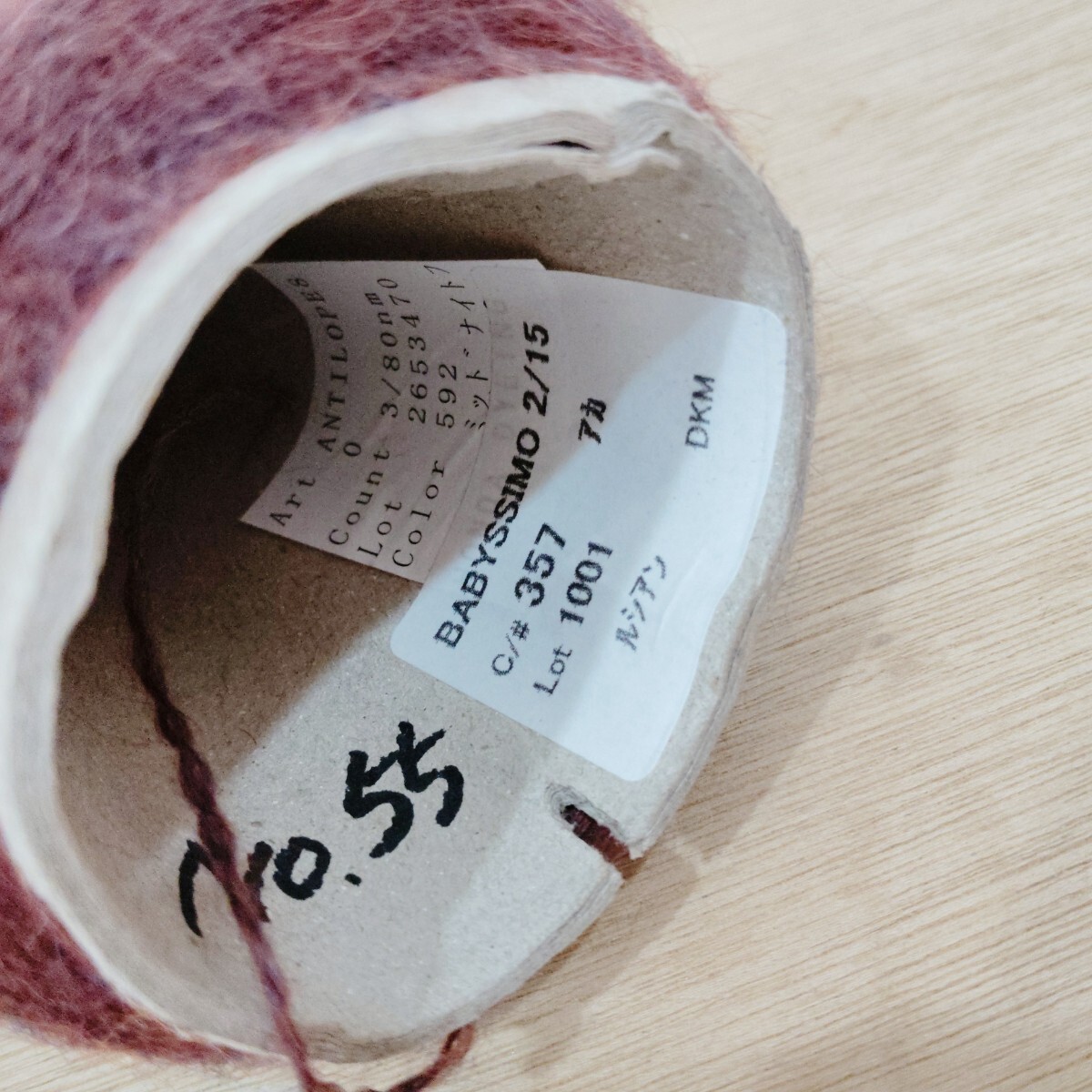 糸 毛糸 BABYSSIMO ベビーアルパカ 赤 ルシアン 番手2/15 工業用 コーン巻 No.55