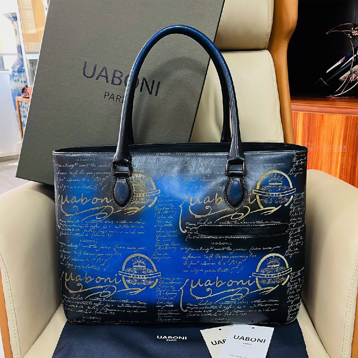 絶賛EU製 定価38万◆UABONI*ユアボニ*幻のパティーヌ*トートバッグ◆高級 手染 手作り 本革 レザー ビジネスバッグ 鞄 紳士用 メンズ