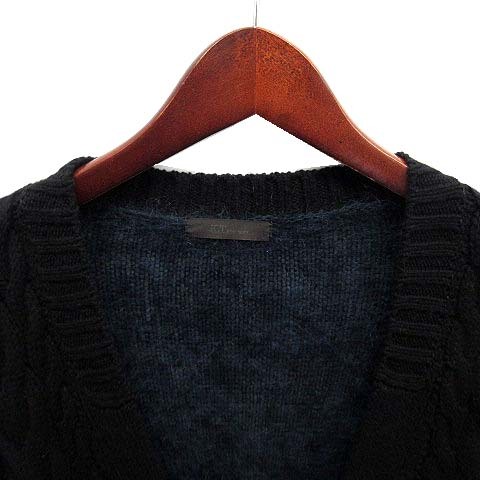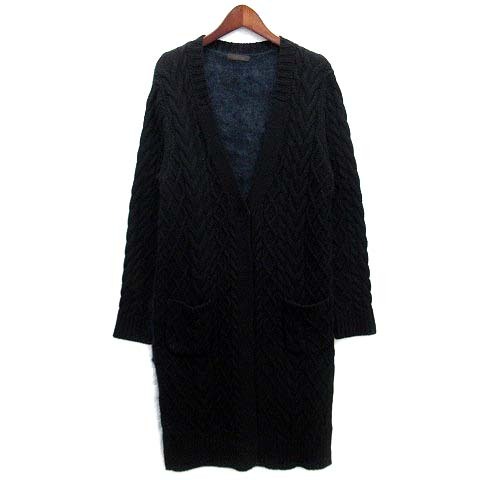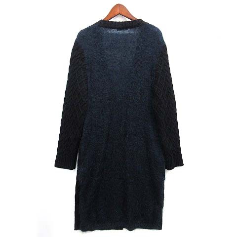 ケーティー キヨコ タカセ K.T KIYOKO TAKASE ロング カーディガン ケーブル 羊毛 モヘヤ 切替 長袖 ブラック ブルー 9 レディース