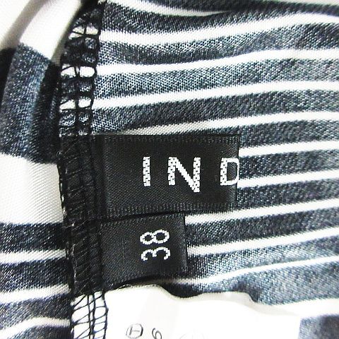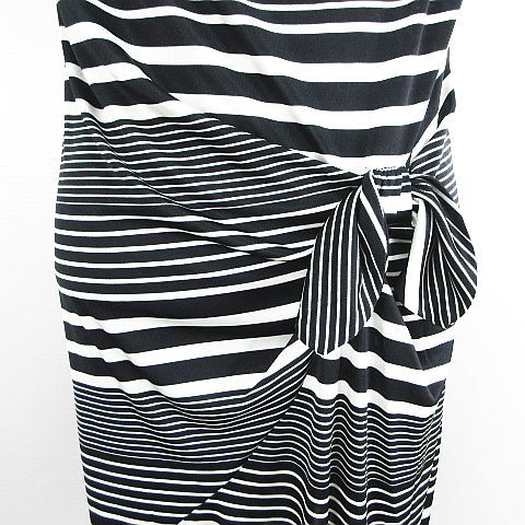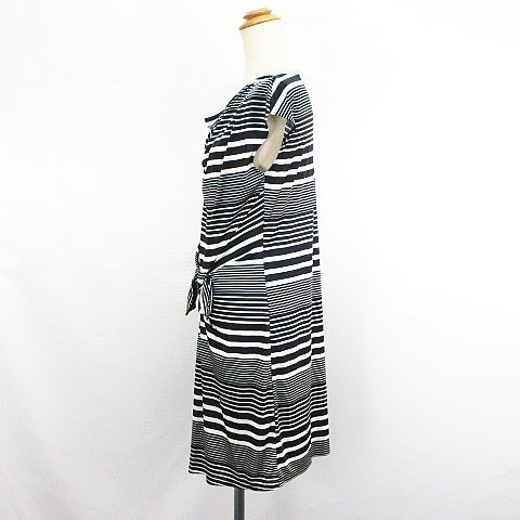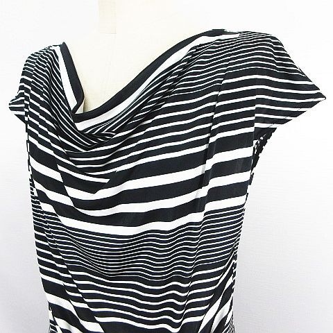 インディヴィ ワンピース フレンチスリーブ ドレープネック ひざ丈 マルチボーダー とろみ 38 ブラック×ホワイト ※EKM レディース