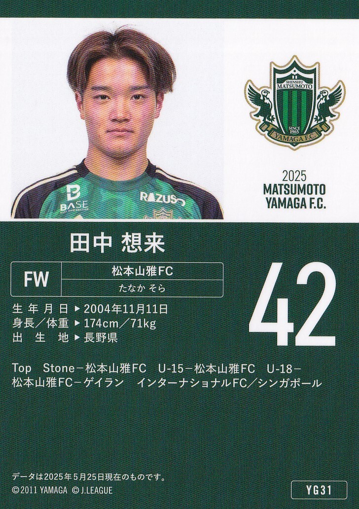 松本山雅FC 2025 オフィシャル YG31 田中想来