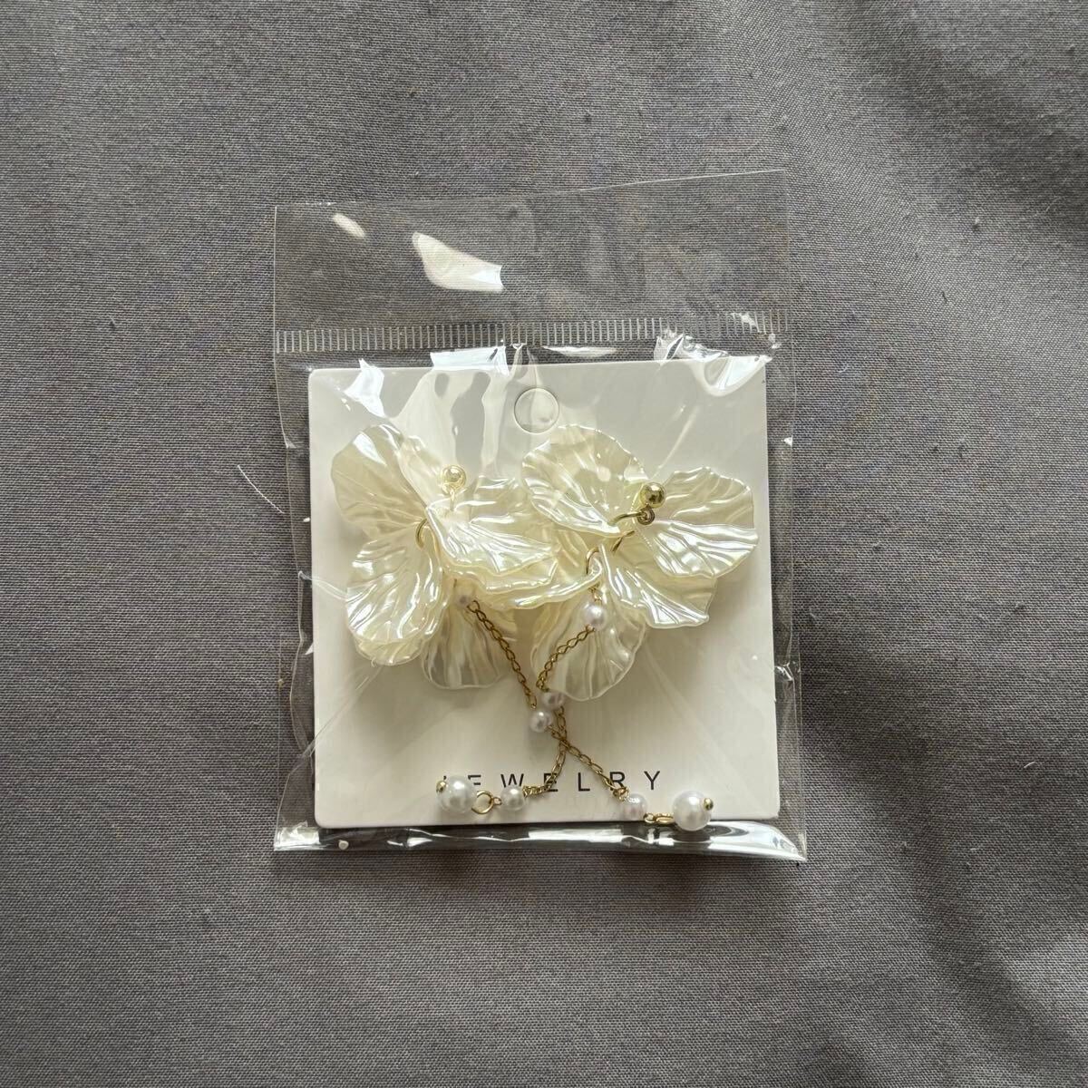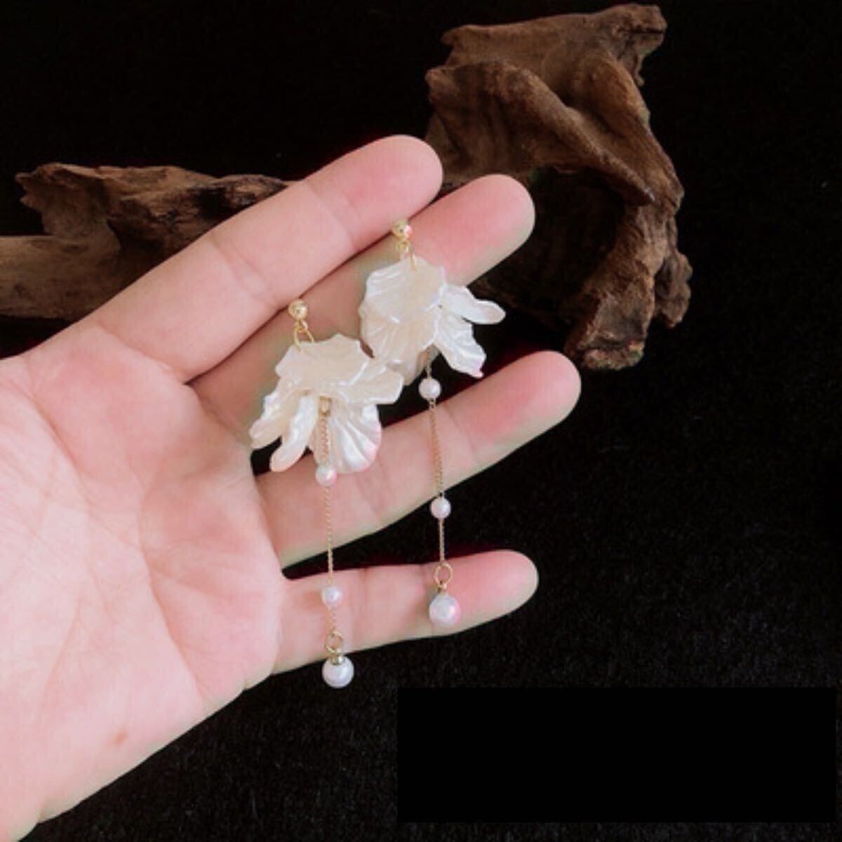 ☆艶感のある花びらとパールがアクセントのロングピアス☆