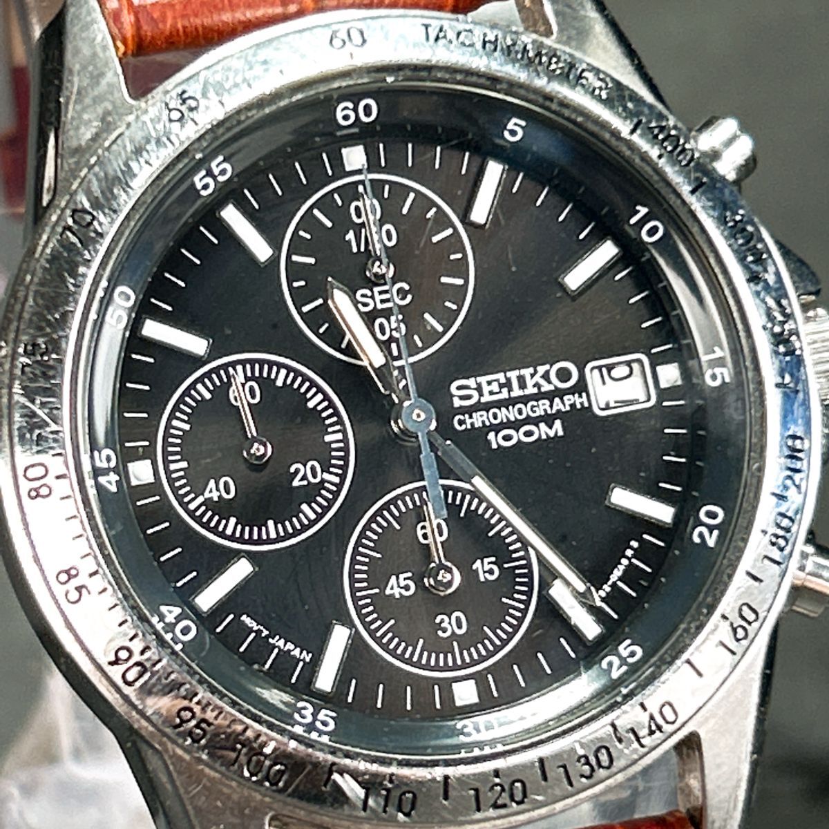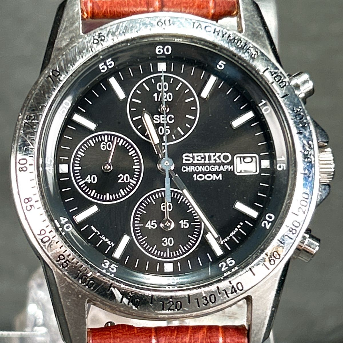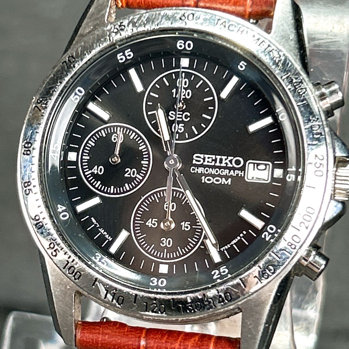 美品 SEIKO セイコー 腕時計 SBTQ041 クオーツ アナログ ラウンド ブラック シルバー クロノグラフ カレンダー 10気圧防水 新品電池交換済