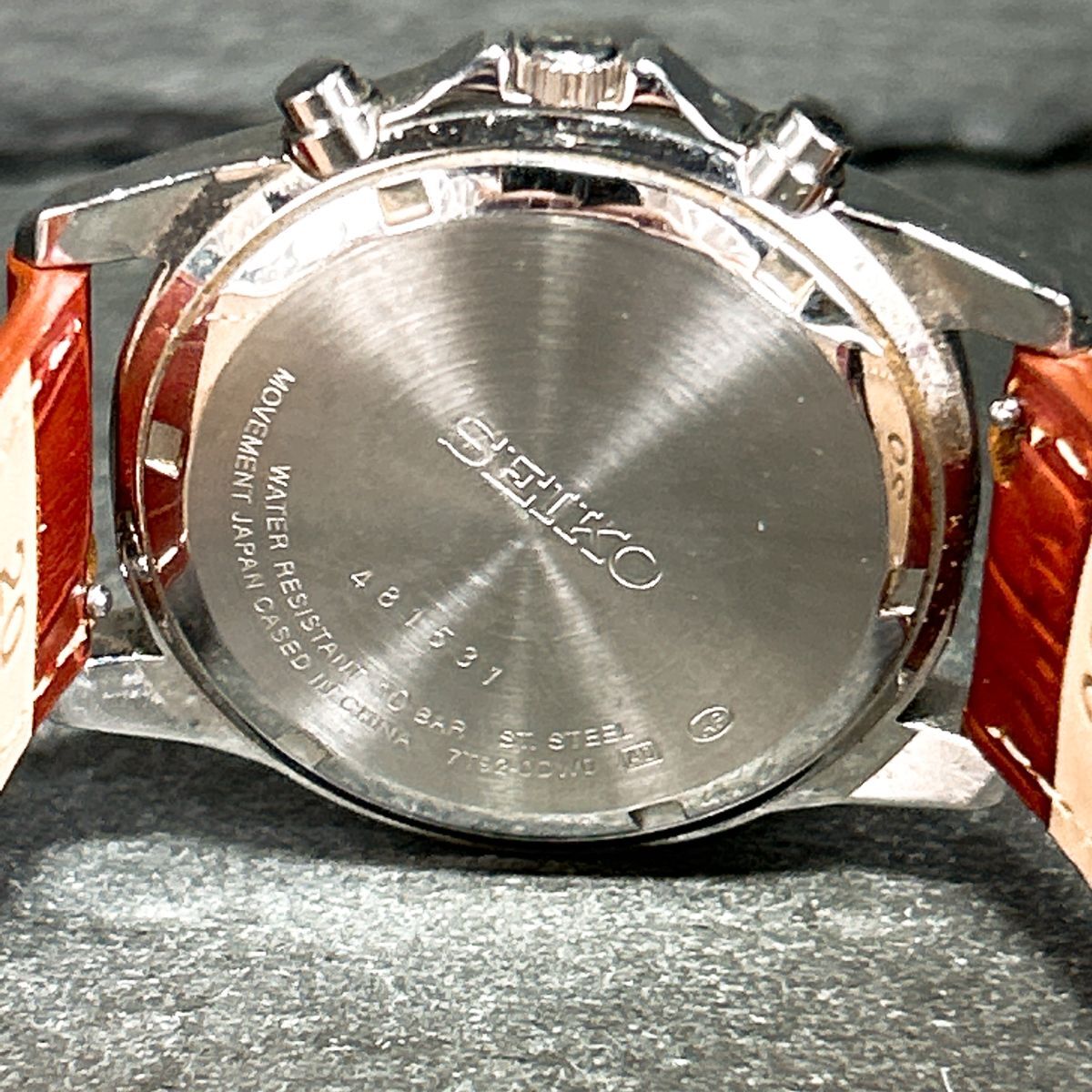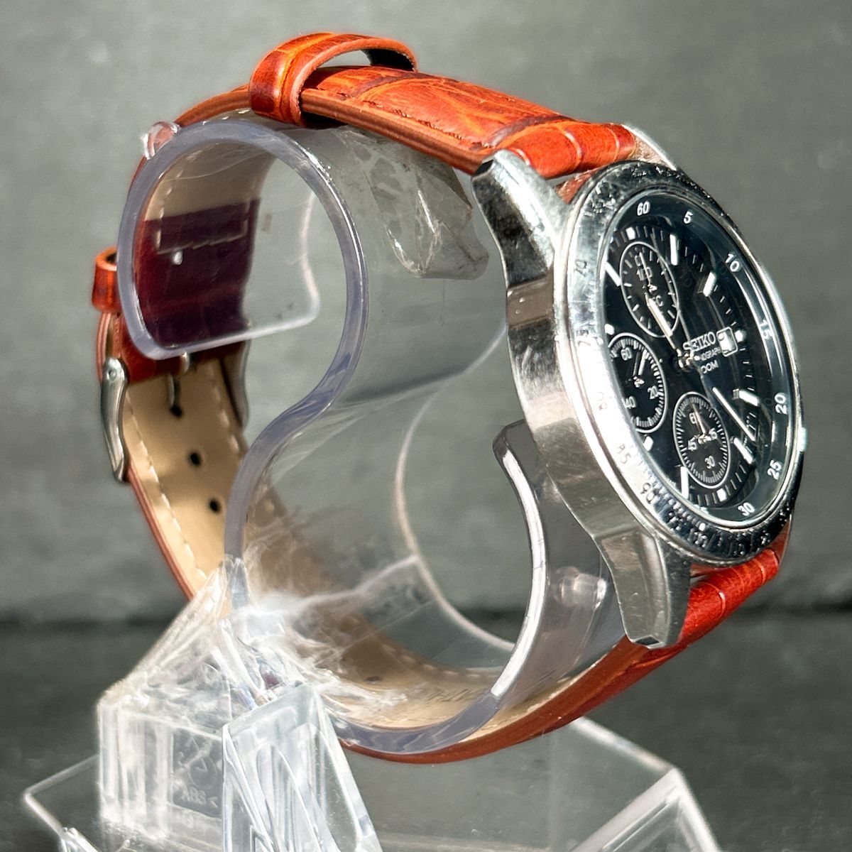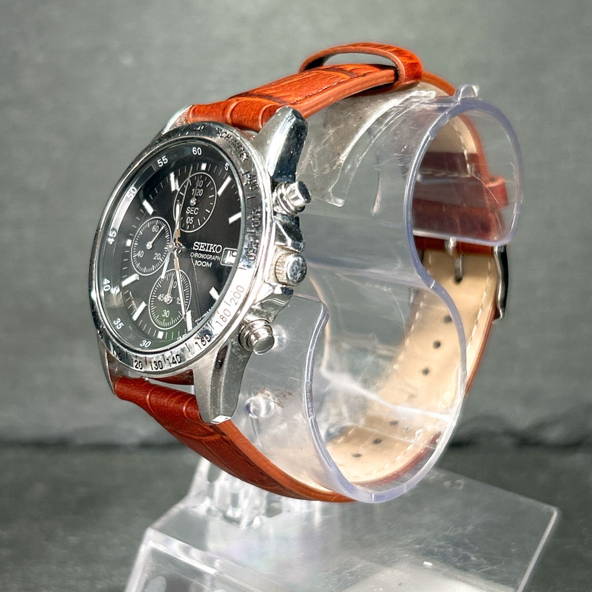 美品 SEIKO セイコー 腕時計 SBTQ041 クオーツ アナログ ラウンド ブラック シルバー クロノグラフ カレンダー 10気圧防水 新品電池交換済