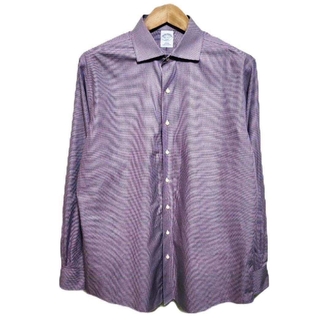Brooks Brothers 長袖 パープルチェックシャツ 16 1/2