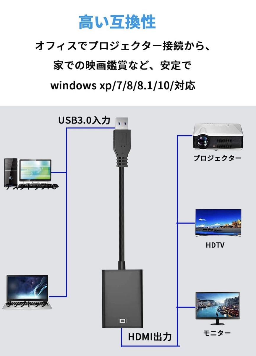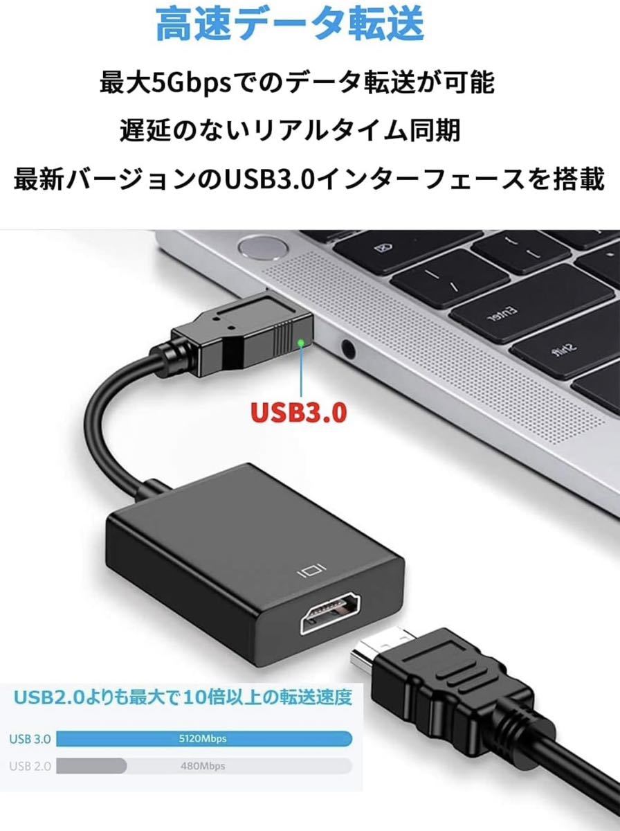 USB HDMI 変換アダプタ 「ドライバー内蔵」 usbディスプレイアダプタ 5Gbps高速伝送 usb3.0 hdmi 変換 ケーブル 1080P対応 音声出力 ディスプレイアダプタ usb3.0 hdmi Windows XP/7/8/10 /11対応 安定出力 コンパクト 使用簡単 4種類のモード自由切り替え