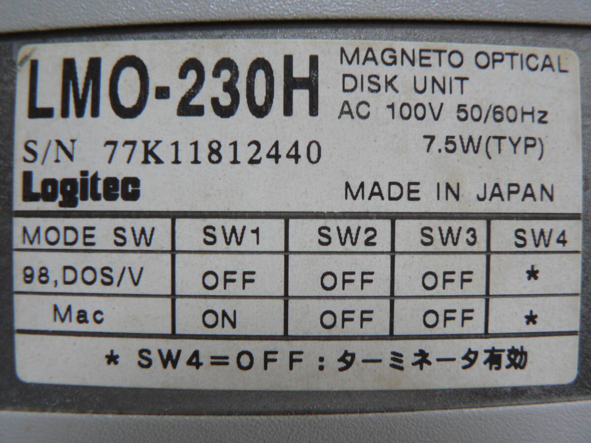 送料最安 750円~ MO装06:ロジテック外付けMO装置/MOドライブ SCSI接続 Logitec LMO-230H 回転音、ディスクの出入れ確認 動作未確認