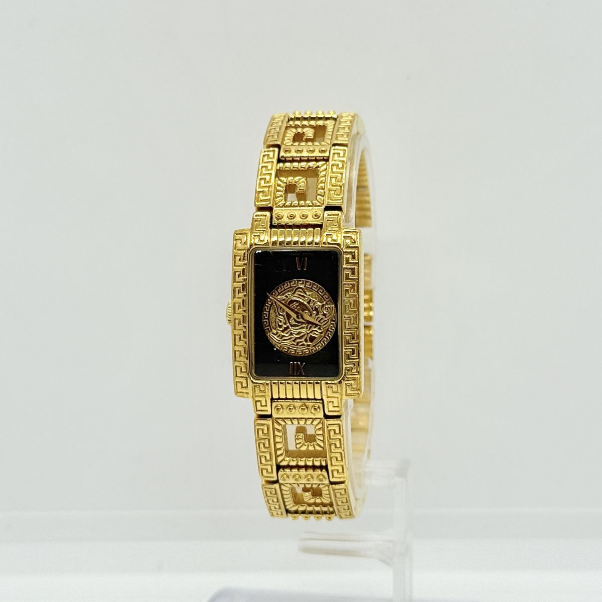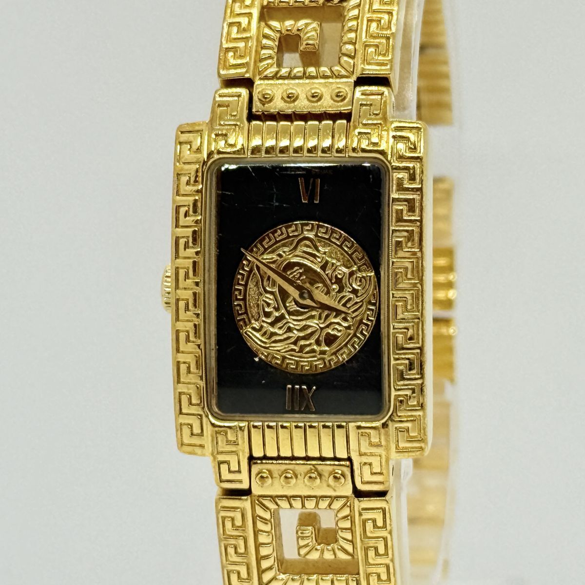 T7632 VERSACE ジャンニヴェルサーチ GIANNI VERSACE 7009019 メデューサ ウォッチ ブレスレット クオーツ 腕時計 黒文字盤 ゴールド
