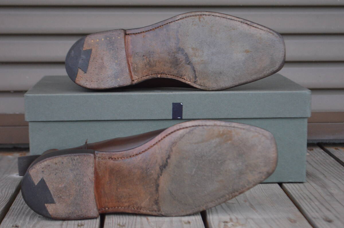 ダークブラウンカーフにシングルレザーソールとなっております。