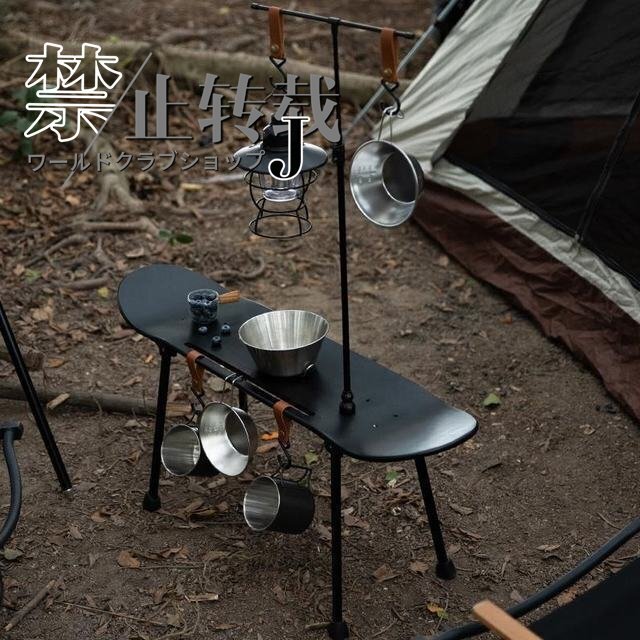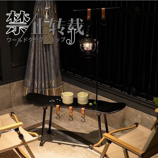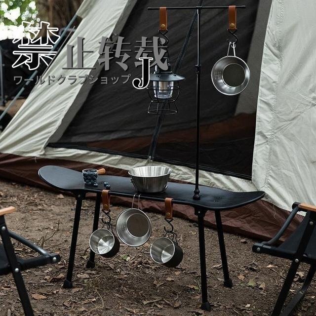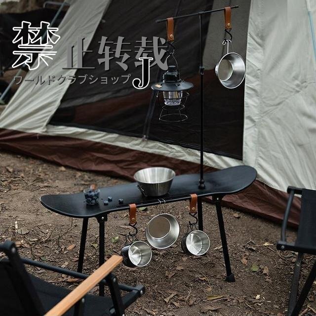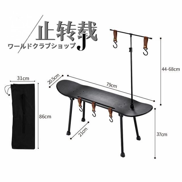 スケボーテーブル スケートボード ハンギング キャンプ  ラック ランタンポール 折りたたみ式 フック5個 収納袋付き ブラック