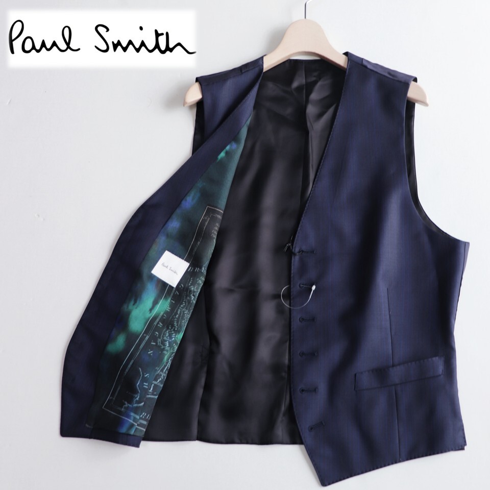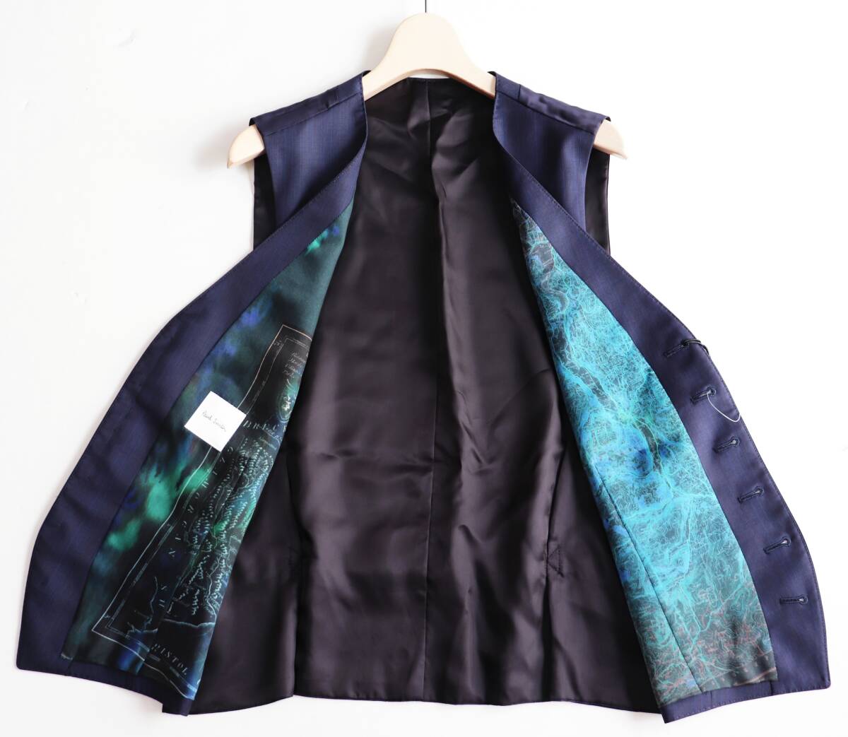 《Paul Smith ポールスミス 》新品 定価39,600円 裏地英国マップ柄 オルタネイトストライプベスト ジレ L S2529 |