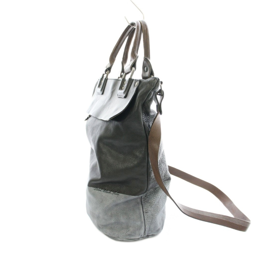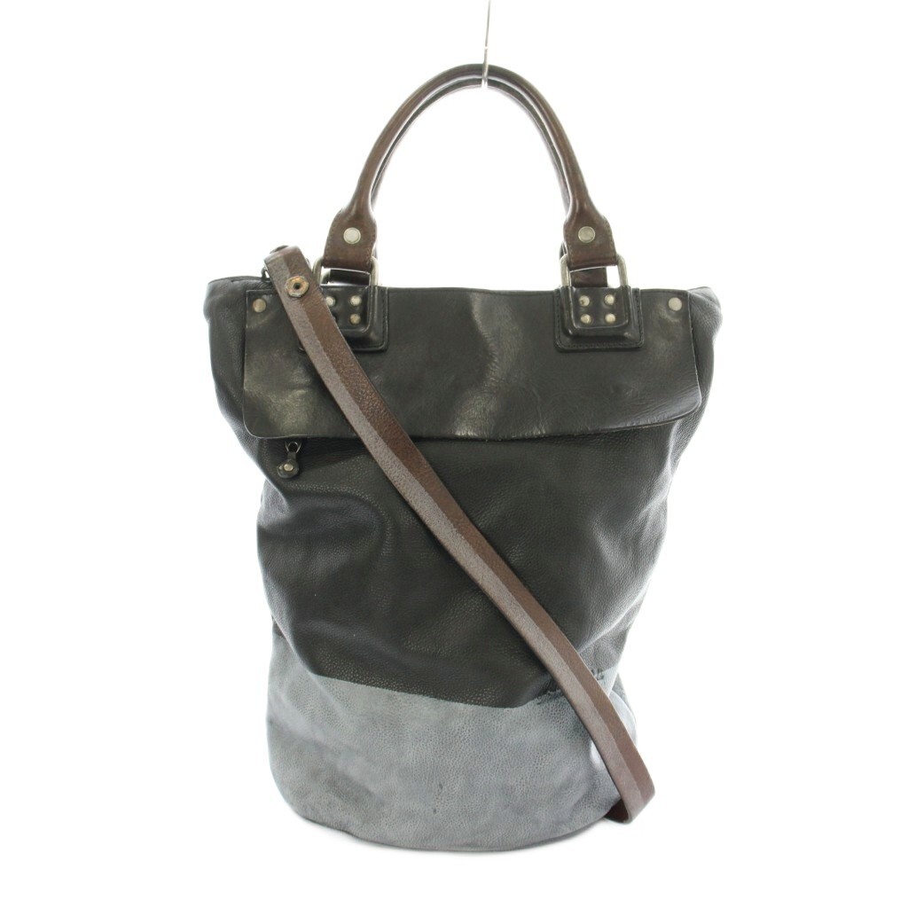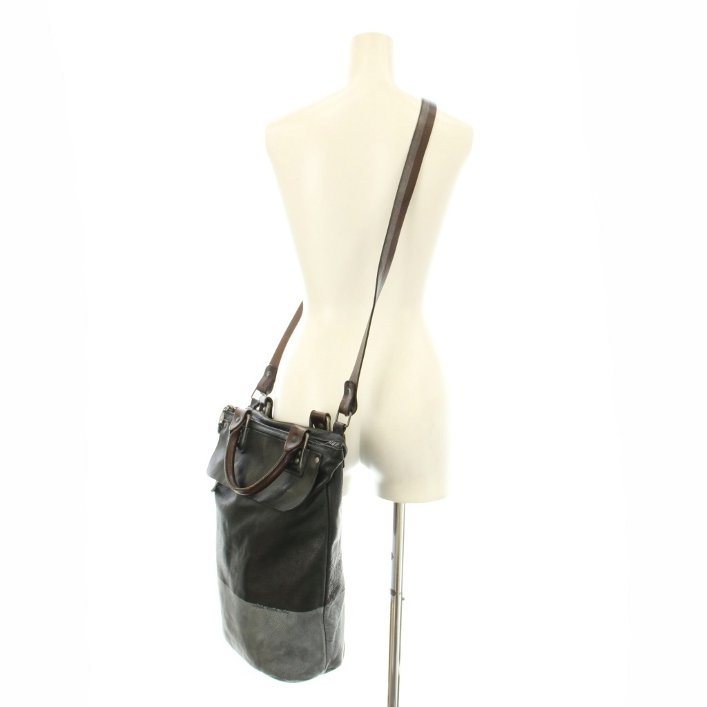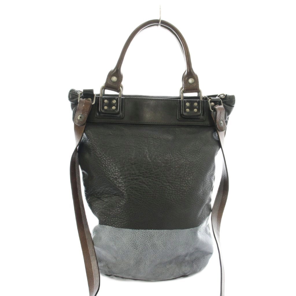 ディーゼルブラックゴールド ショルダーバッグ トートバッグ レザー バイカラー ロゴ刺繍 黒 ブラック ブルーグレー