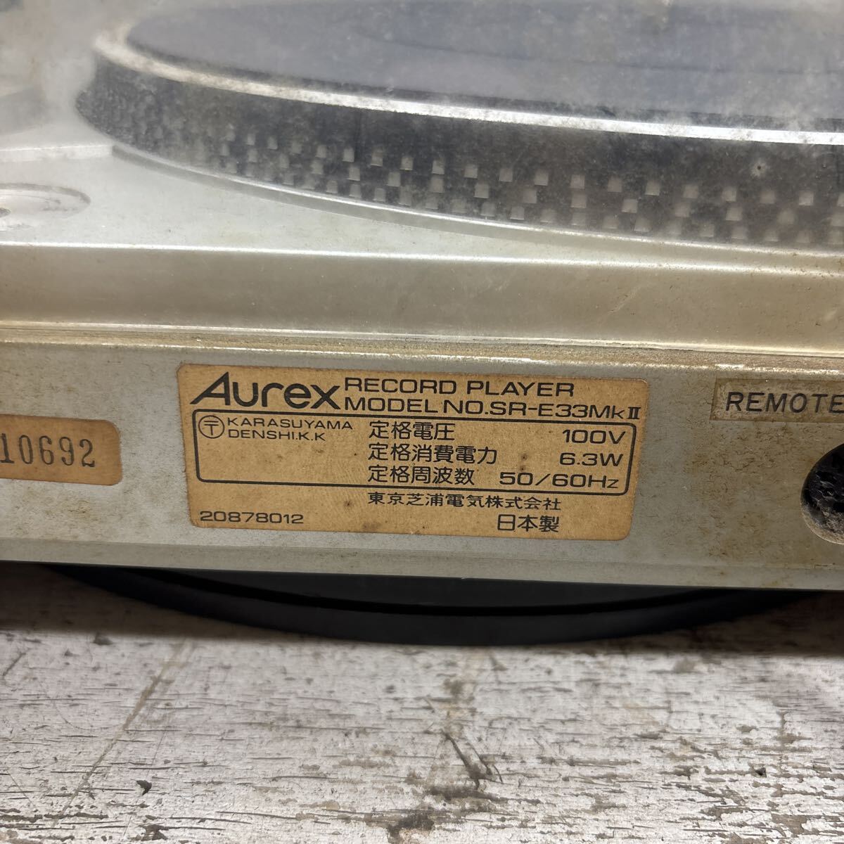 RD9-37 激安 TOSHIBA AUREX SR-E33MKⅡ RECORD PLAYER レコードプレーヤー 通電OK 中古現状品 ※3回再出品で処分