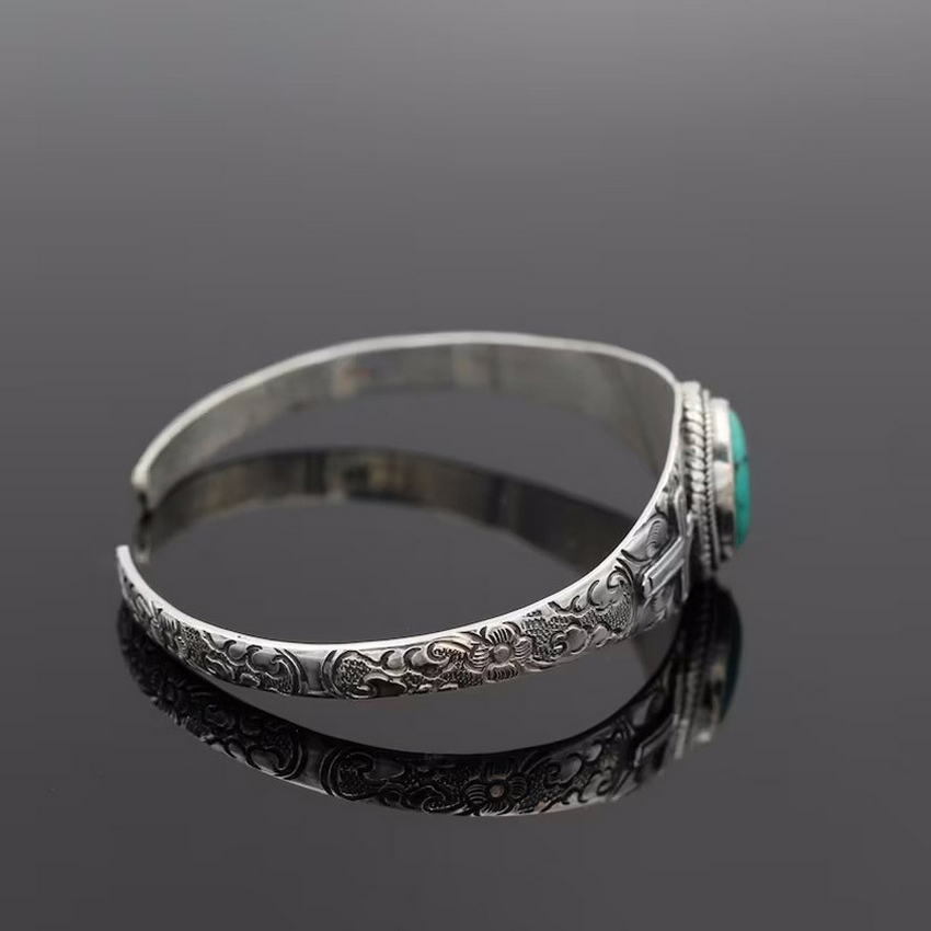 ネイティブな雰囲気★ターコイズ&リーフ柄ンバングル●シルバー925色