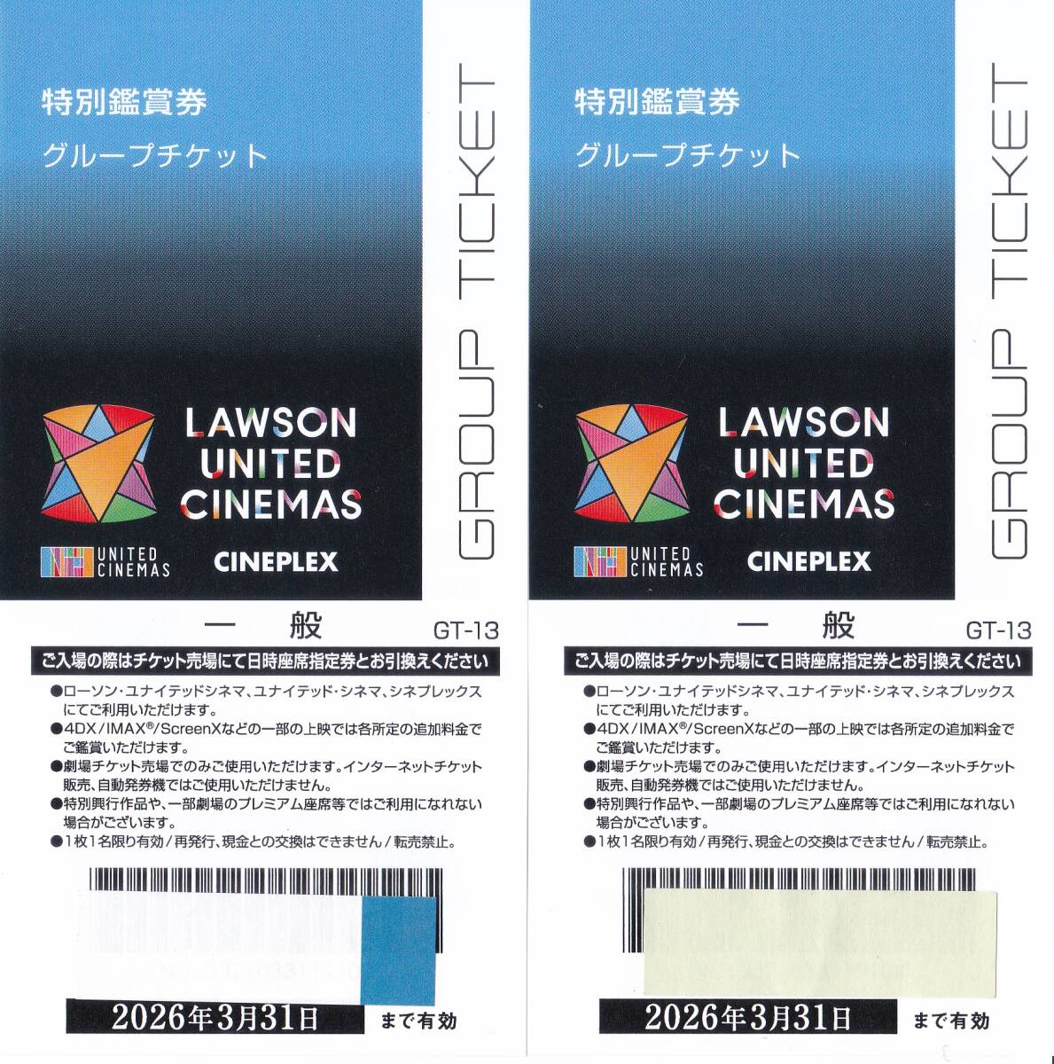 ローソン・ユナイテッドシネマ 特別鑑賞券 2026年3月31日まで有効 2枚 送料85円(ミニレター)
