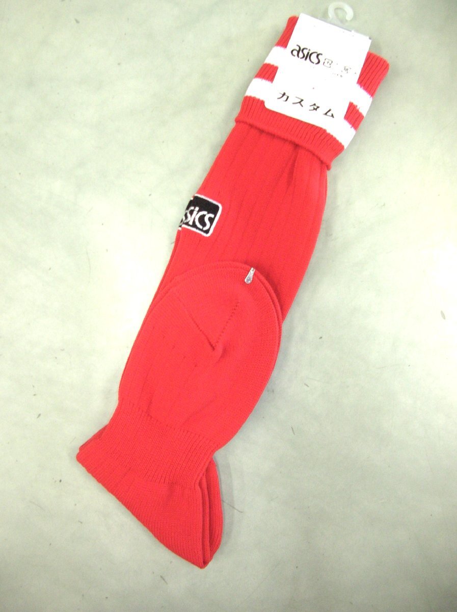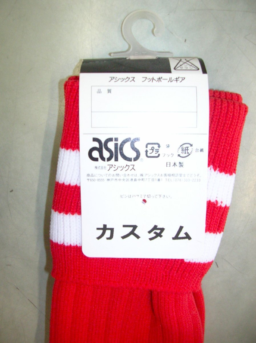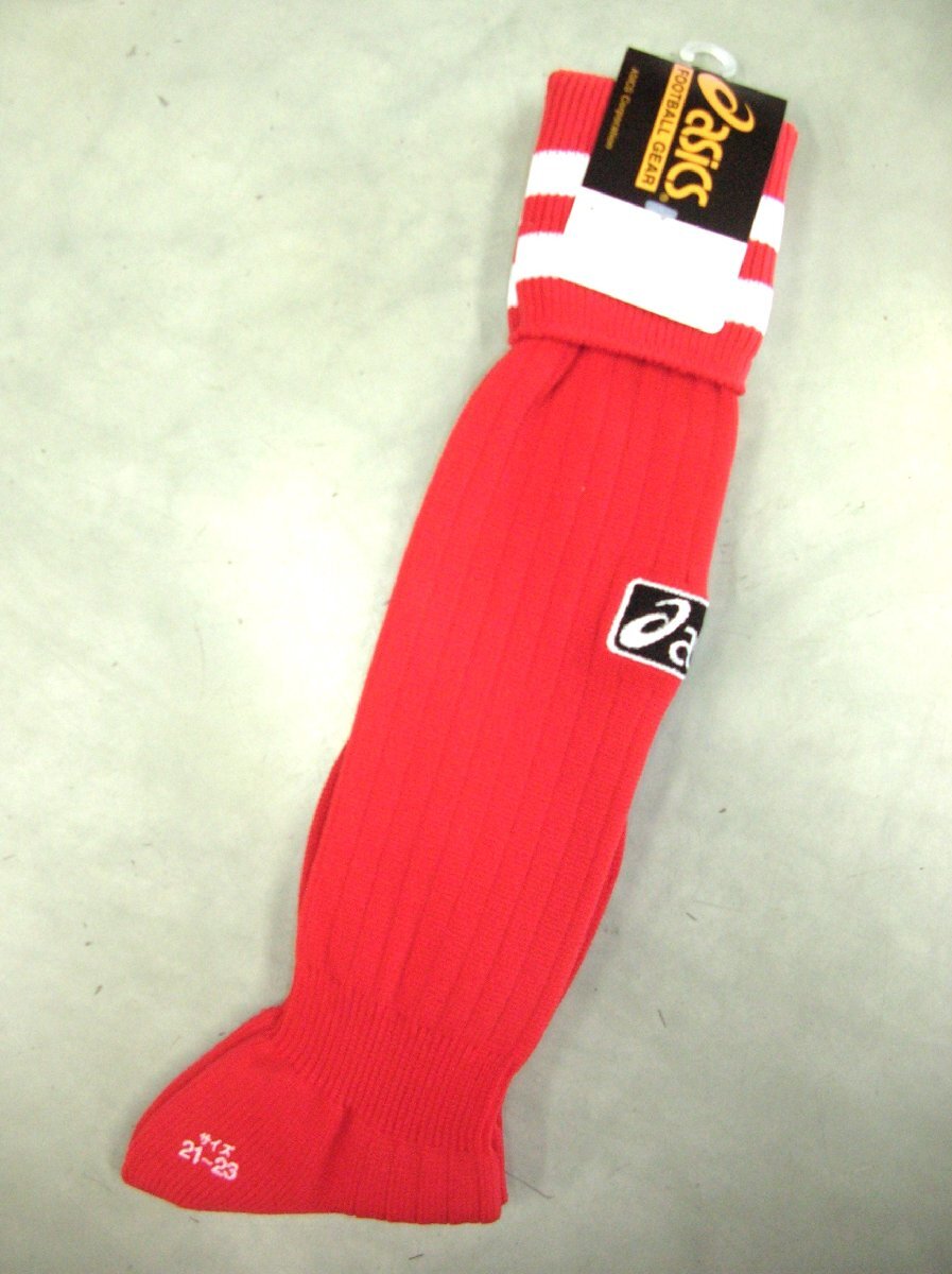 送料無料★アシックス★サッカー【ジュニアストッキング】レッド・ホワイトライン★21~23cm★ASICS★練習用に最適!