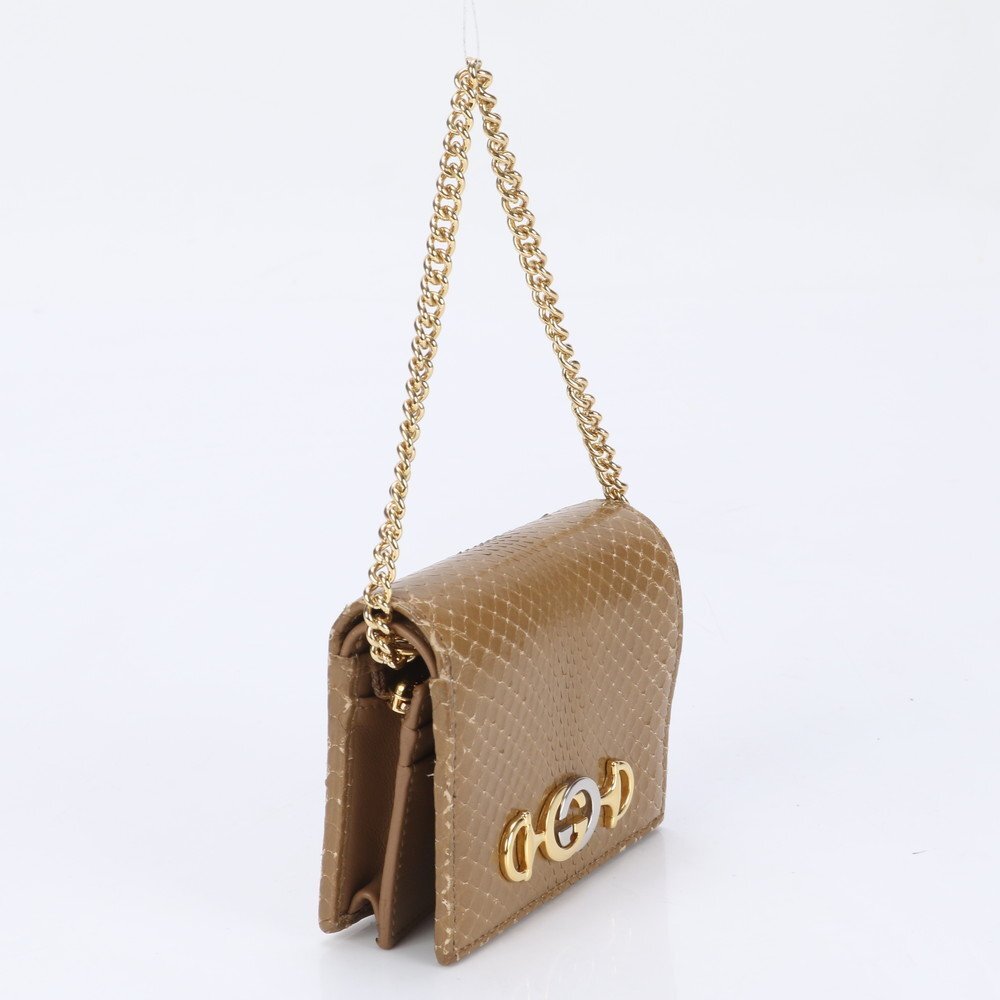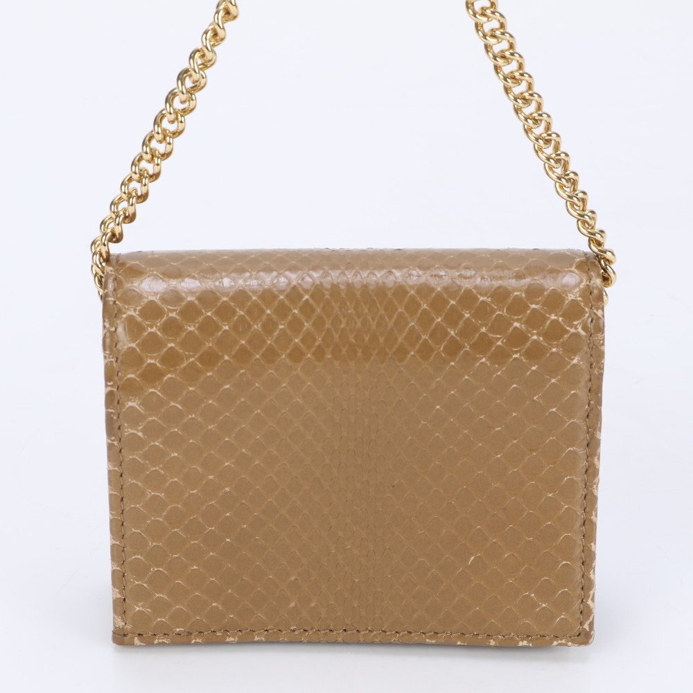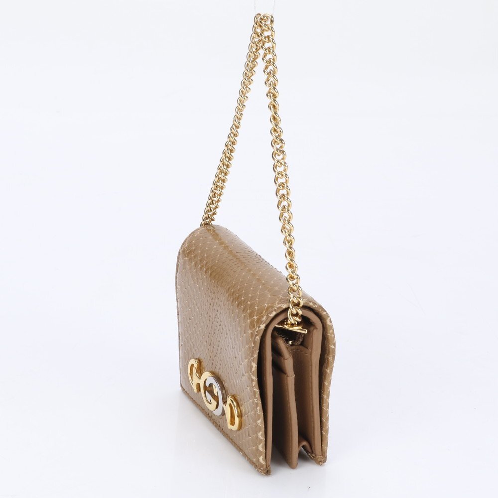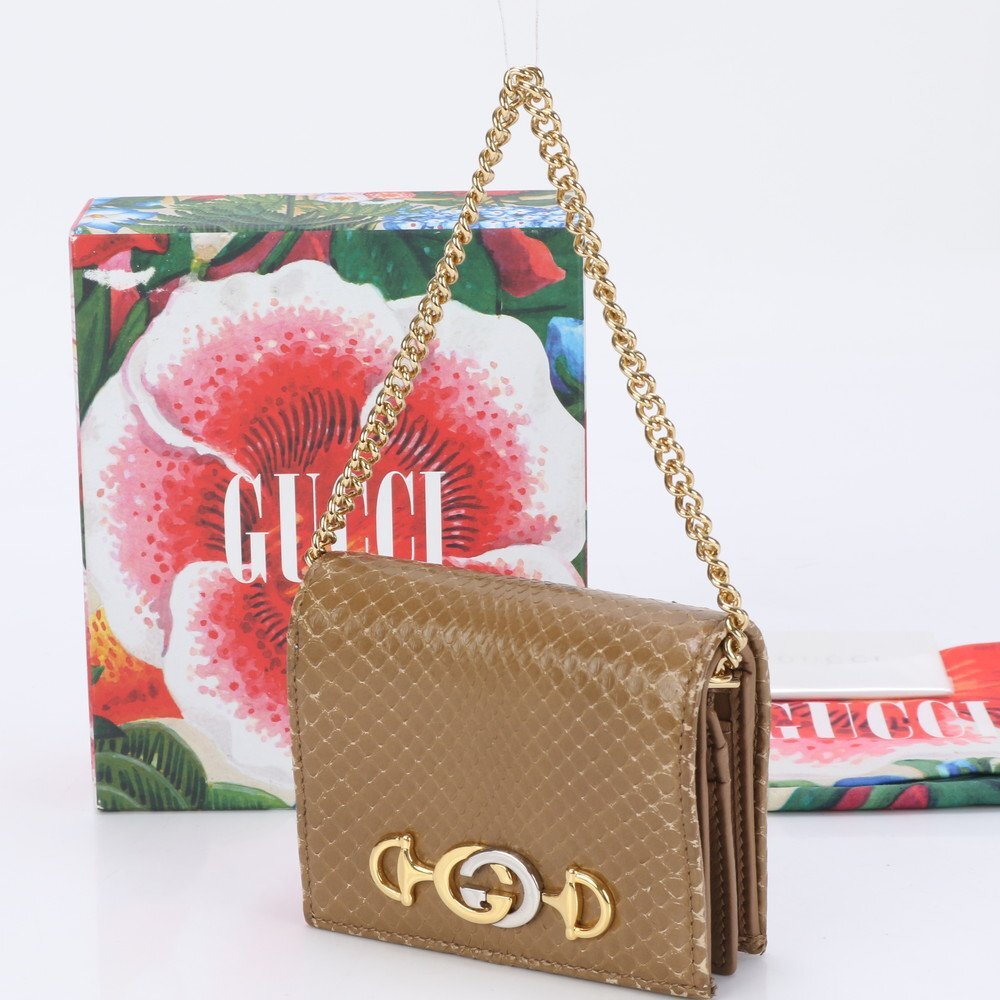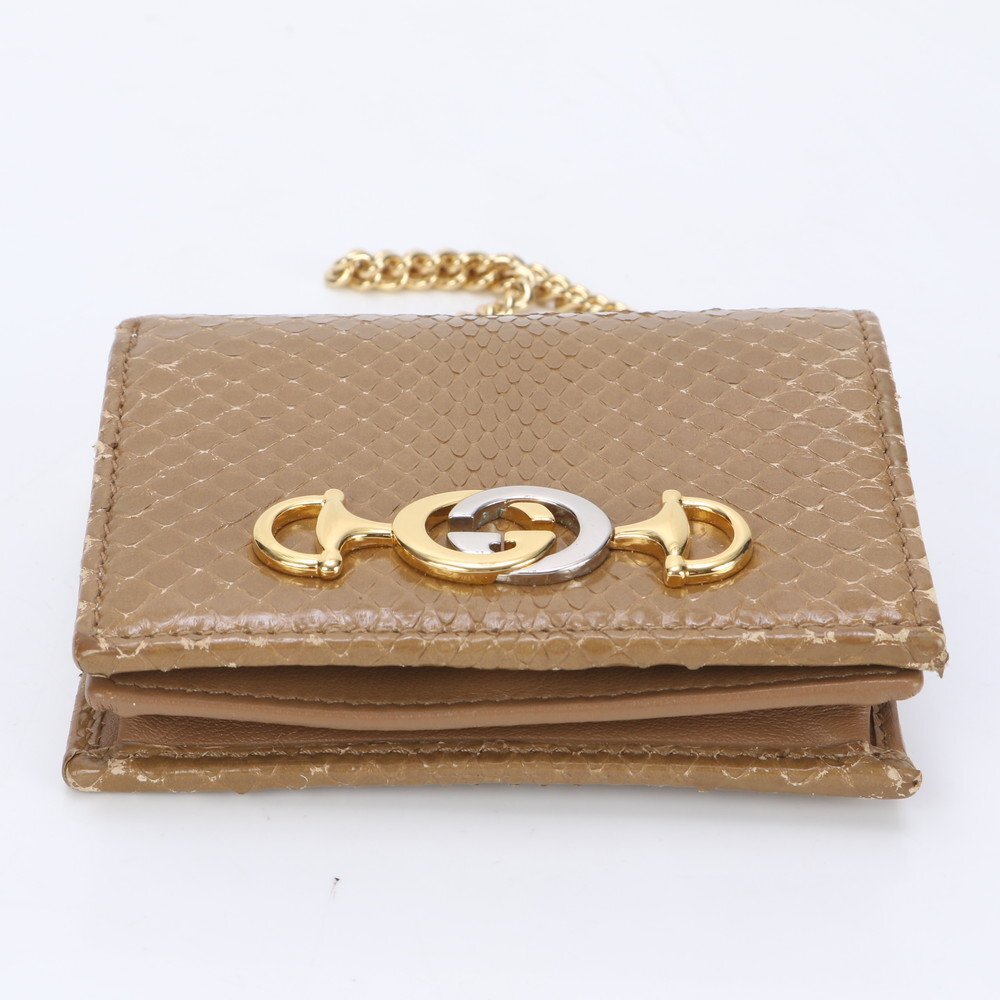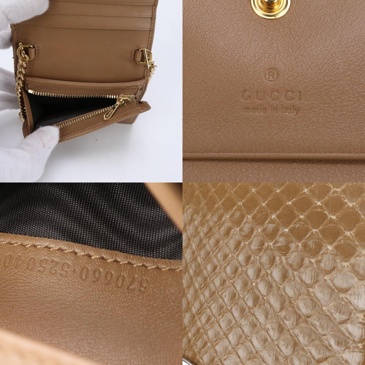 1円 極美品 グッチ ズゥミ チェーン ハンドル パイソン レザー 二つ折り 財布 コンパクト ウォレット 長財布 570660 レディース EKE BL12-6