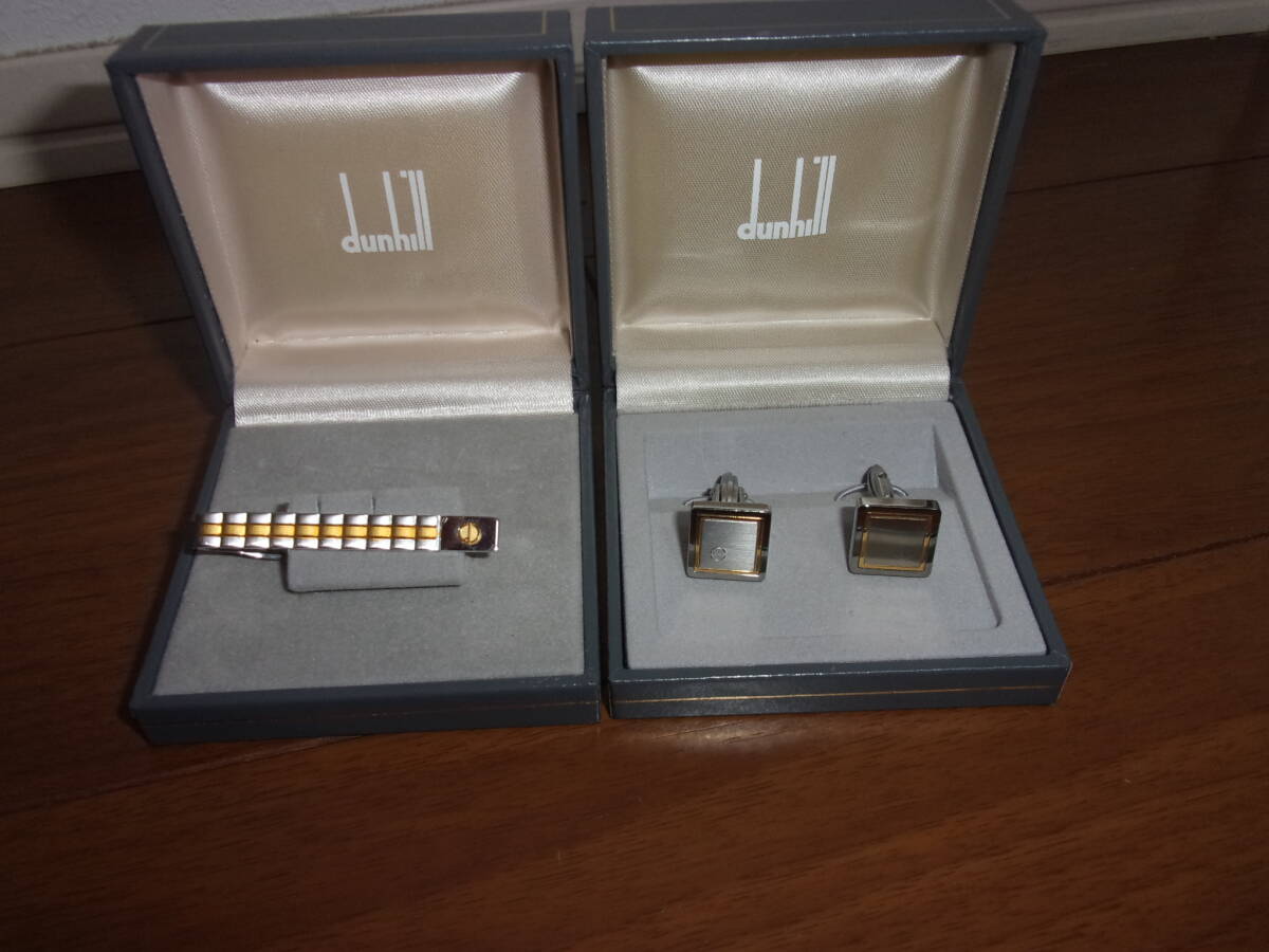 ダンヒルのタイピン、カウスセットです。10年以上前に購入したのですがほとんど使った記憶がないぐらい使わないので出品しました。