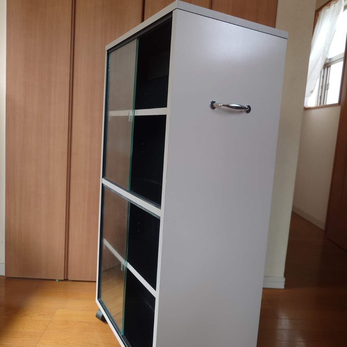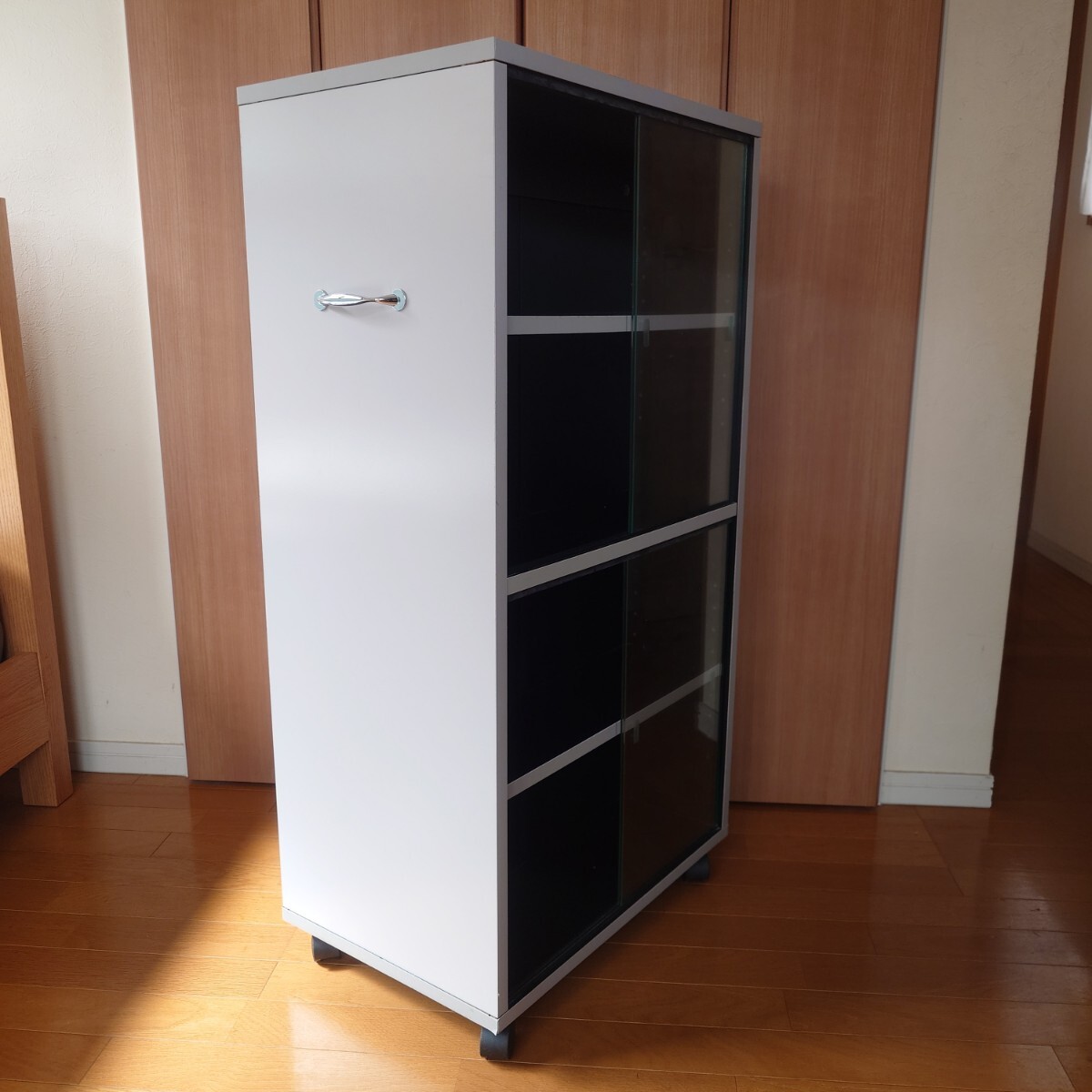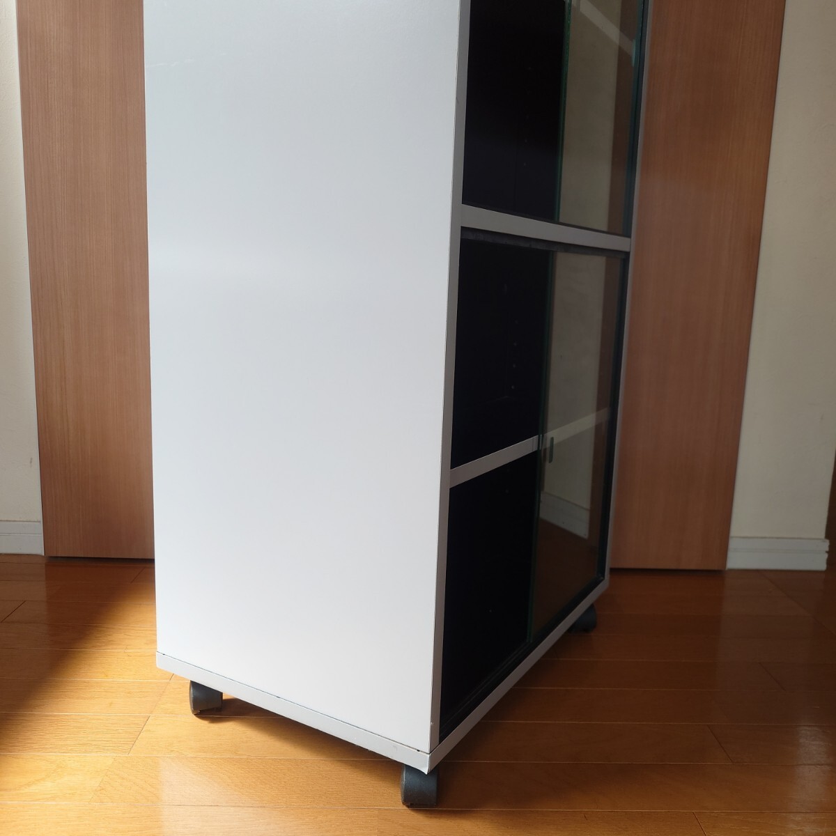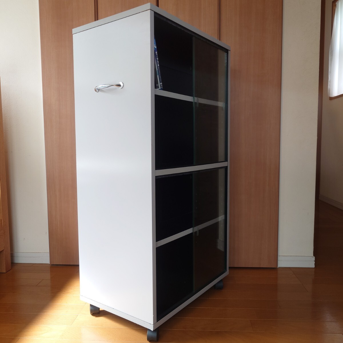 ガラス扉付き 大容量 両面収納 キャスターラックです。