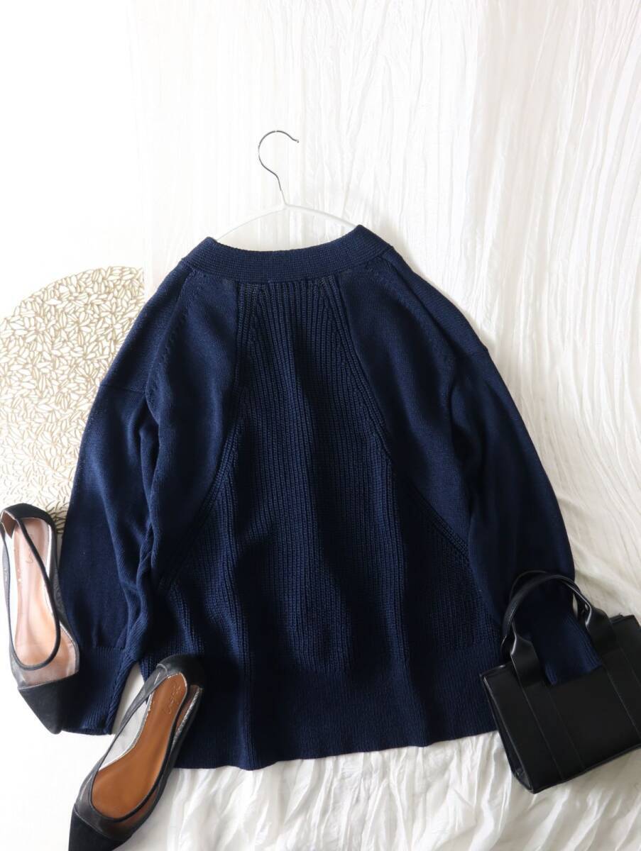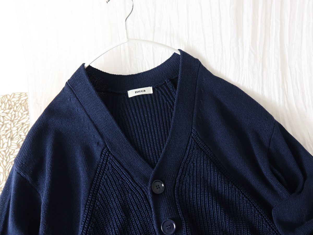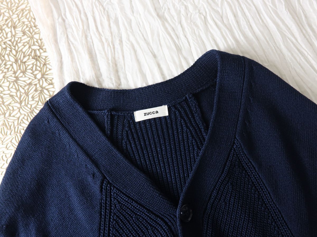 ズッカ ZUCCa☆洗える 綿100% 編地切替 Vネック カーディガン Mサイズ☆A-O 5603