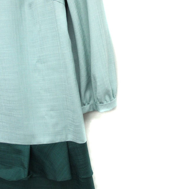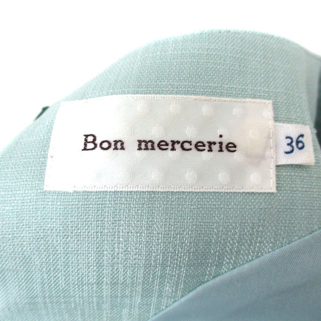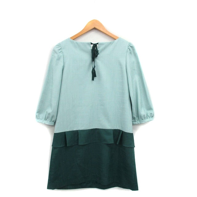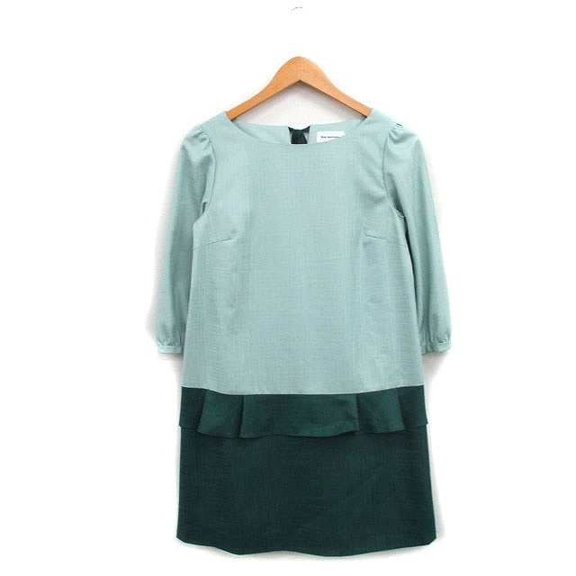 ボンメルスリー BON MERCERIE ペプラム ワンピース 七分袖 ミニ バイカラー 36 ミントグリーン /KT10 レディース