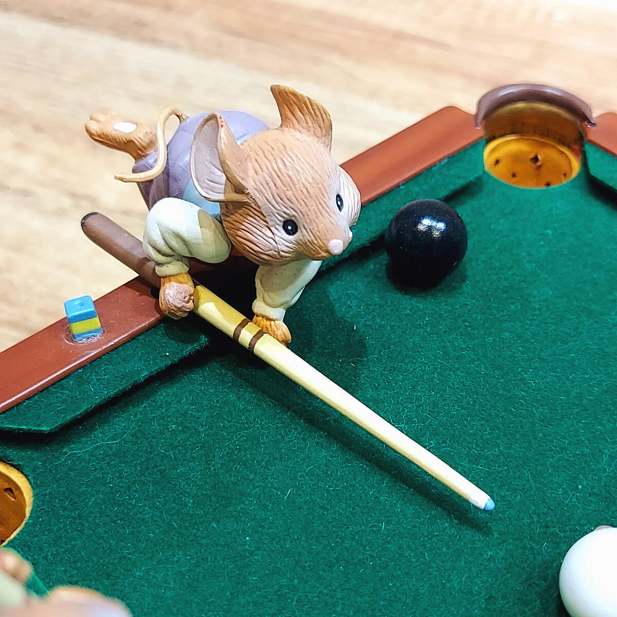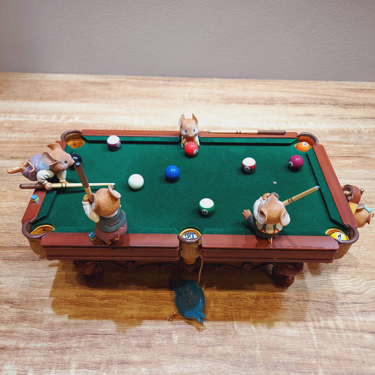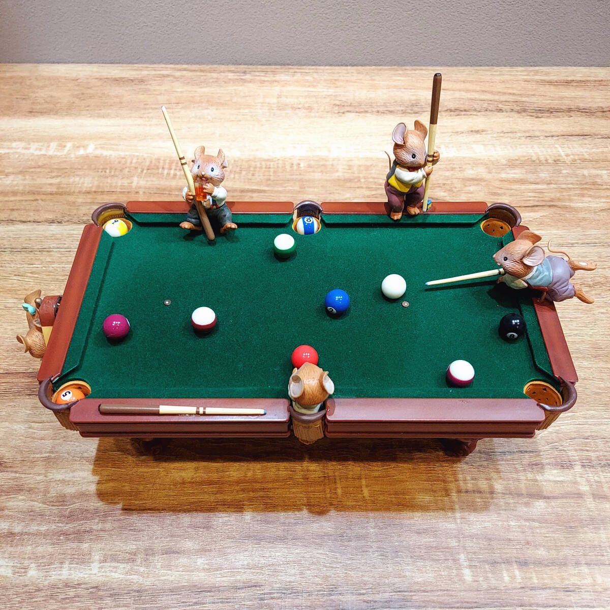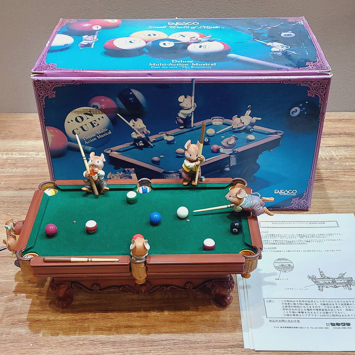 On Cue エネスコ社 ENESCO 電子オルゴール ビリヤード Deluxe Multi Action Musical サイズ約:横幅 29cm 奥行 14.5cm 高さ 16.5cm 箱・説明書・アダプター付属 汚れ等はなくキレイな状態です。 電源アダプターを入れて、スイッチで音楽が流れ各ネズミ達が動きます。 サイドのネズミが取れているため動きません。 スイッチを奥に入れすぎると接触が悪くなり通電しない事がございます。 画像では写しきれないクスミ、汚れ・小傷等ある場合がございます。 ご理解の上、ご入札をお願いいたします。 |