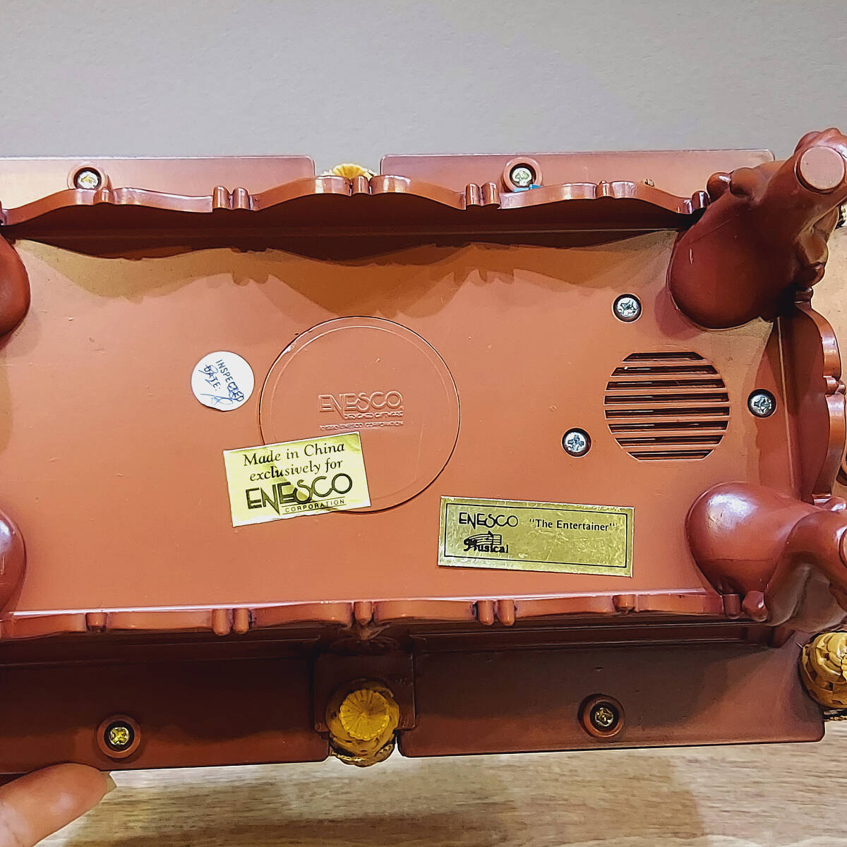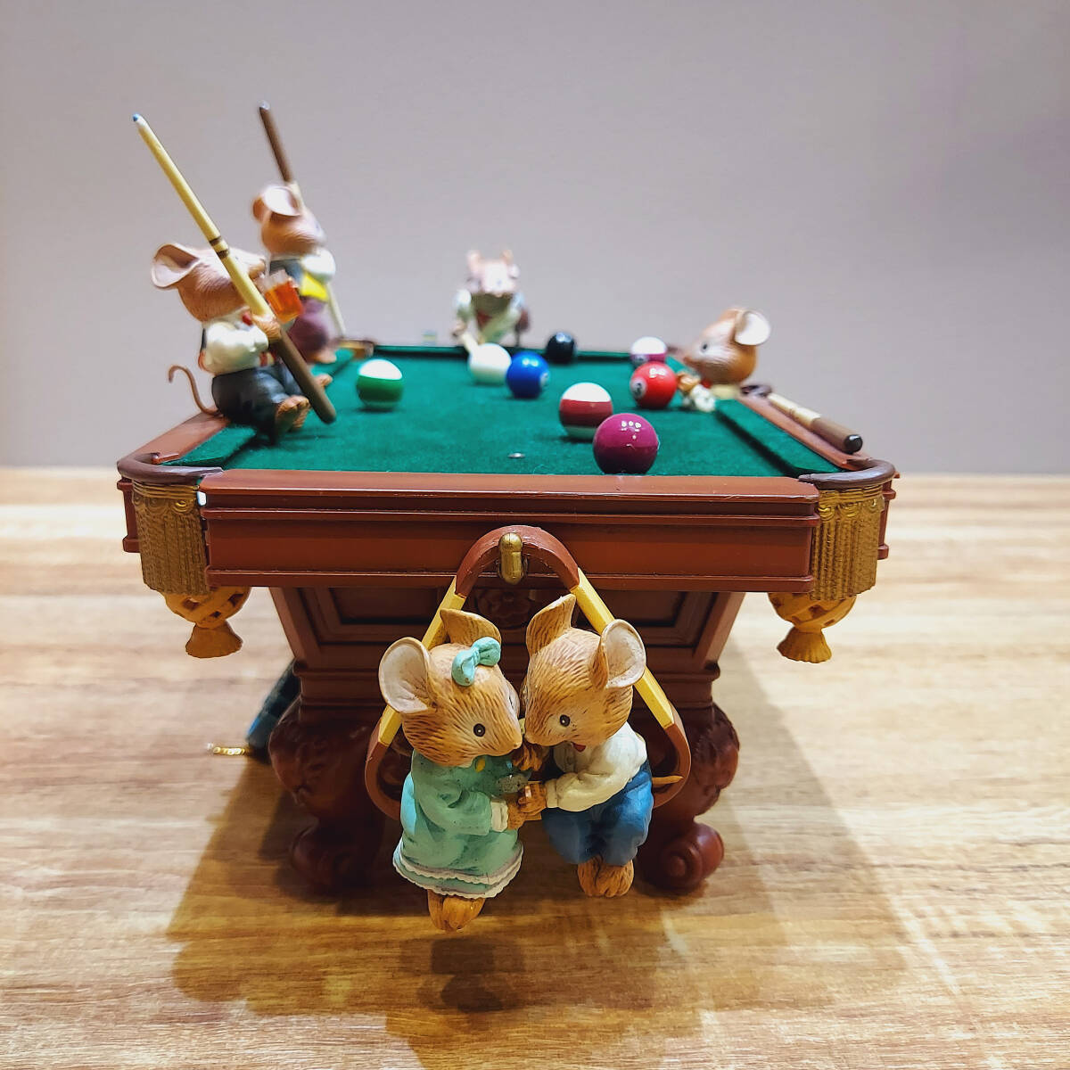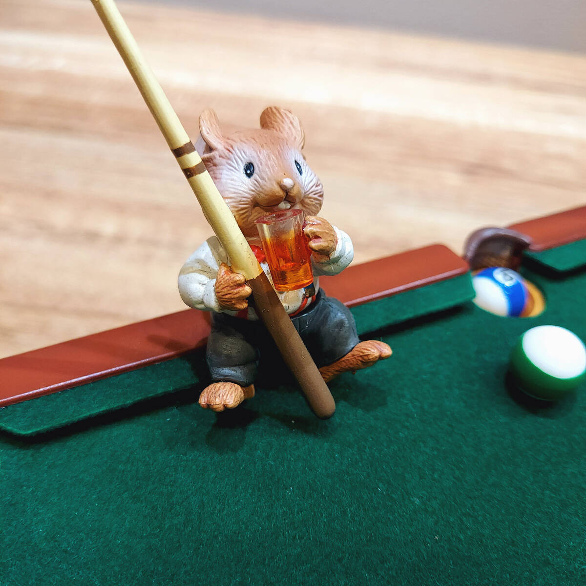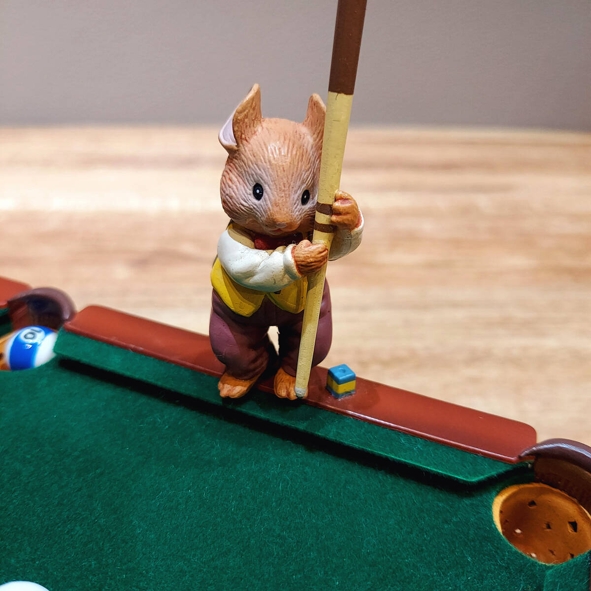 On Cue エネスコ社 ENESCO 電子オルゴール ビリヤード Deluxe Multi Action Musical サイズ約:横幅 29cm 奥行 14.5cm 高さ 16.5cm 箱・説明書・アダプター付属 汚れ等はなくキレイな状態です。 電源アダプターを入れて、スイッチで音楽が流れ各ネズミ達が動きます。 サイドのネズミが取れているため動きません。 スイッチを奥に入れすぎると接触が悪くなり通電しない事がございます。 画像では写しきれないクスミ、汚れ・小傷等ある場合がございます。 ご理解の上、ご入札をお願いいたします。 |