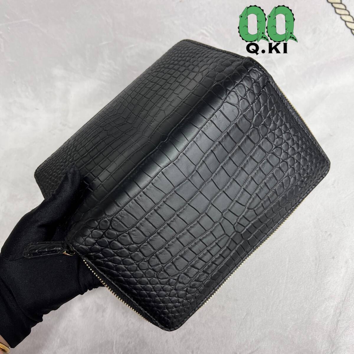 一生モノの逸品 ファスナー金 高級クロコダイル マット加工 丈夫なワニ革 メンズ長財布 ラウンドファスナーYKK 腹革センター取り 黒
