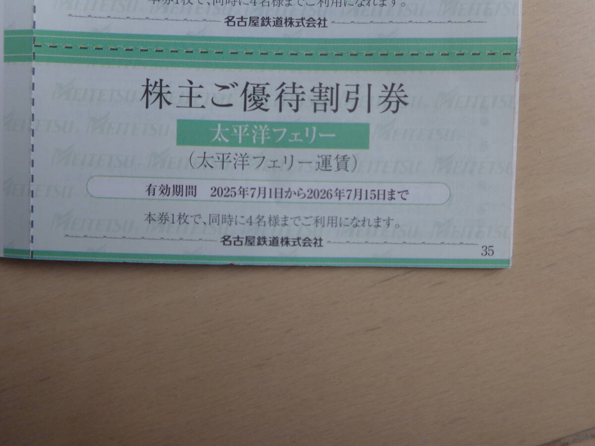 太平洋フェリー 株主ご優待割引券×1枚(10%割引)○名古屋鉄道 株主優待券○ 2025年7月15日まで 名鉄