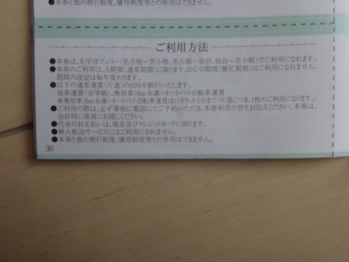 1.太平洋フェリー 株主ご優待割引券×1枚(10%割引) (名古屋鉄道 株主優待券)