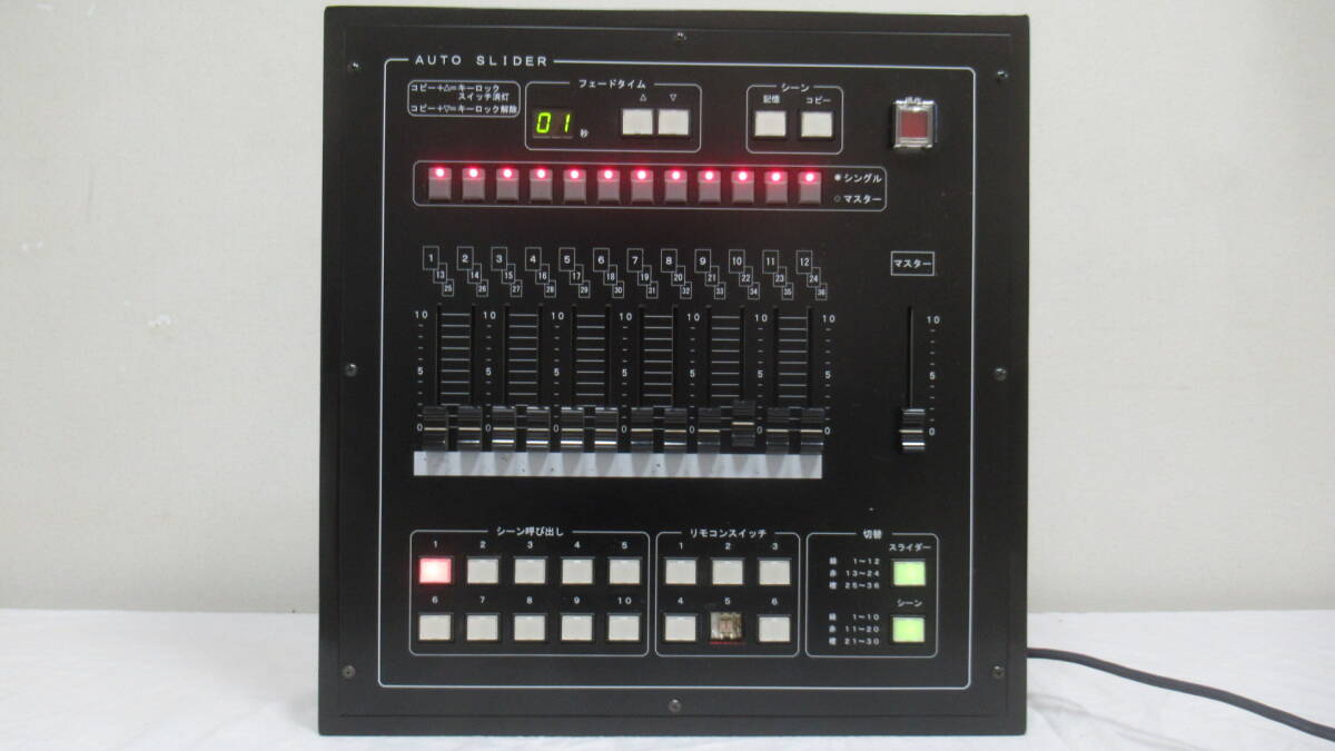 ◆商品説明◆ | AUTO SLIDER 照明コントローラー 【外観:程度良】 【状態:ジャンク】 ・キズ等あります。 ・リモコンスイッチ5番のボタンが欠落しています。(画像でご確認ください) 【付属品】 ・無し 他にも画像が御座いますので宜しければご覧になってください。 AUTO SLIDER |