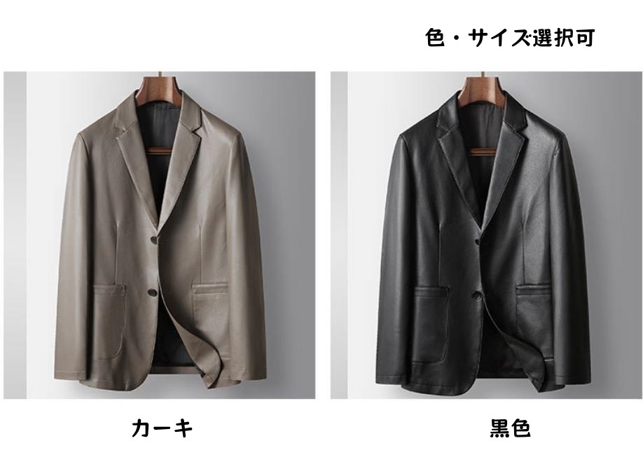 フェイクレザージャケット テーラードジャケット PUレザージャケット メンズ*新品 ブレザー 春秋冬服紳士服【YSY999】カーキ M