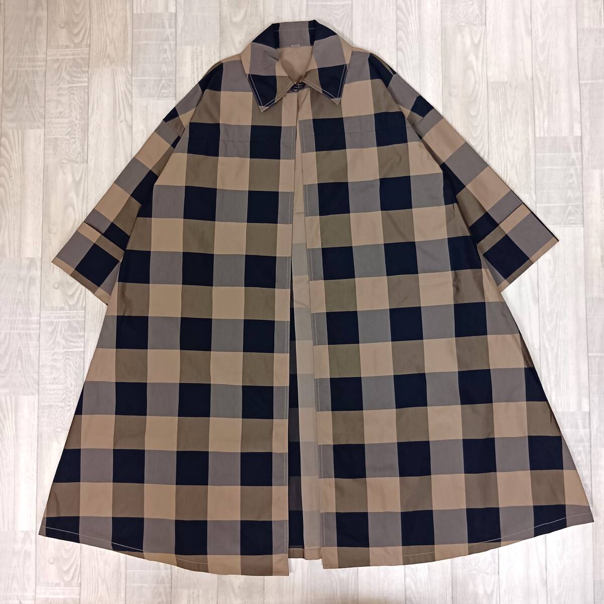 | 【実寸】 | 肩幅70.5cm,身幅69cm,着丈113cm,袖丈40cm |