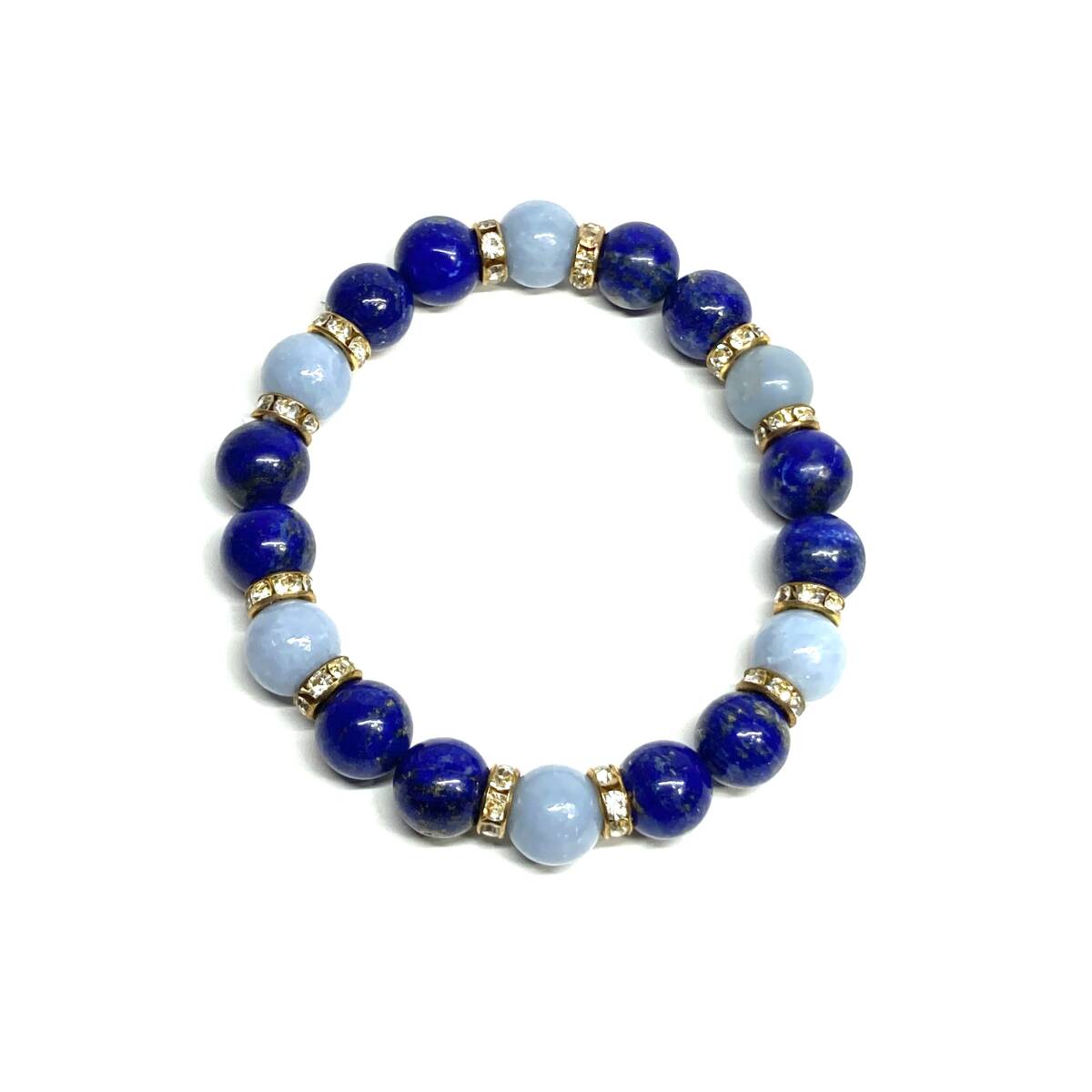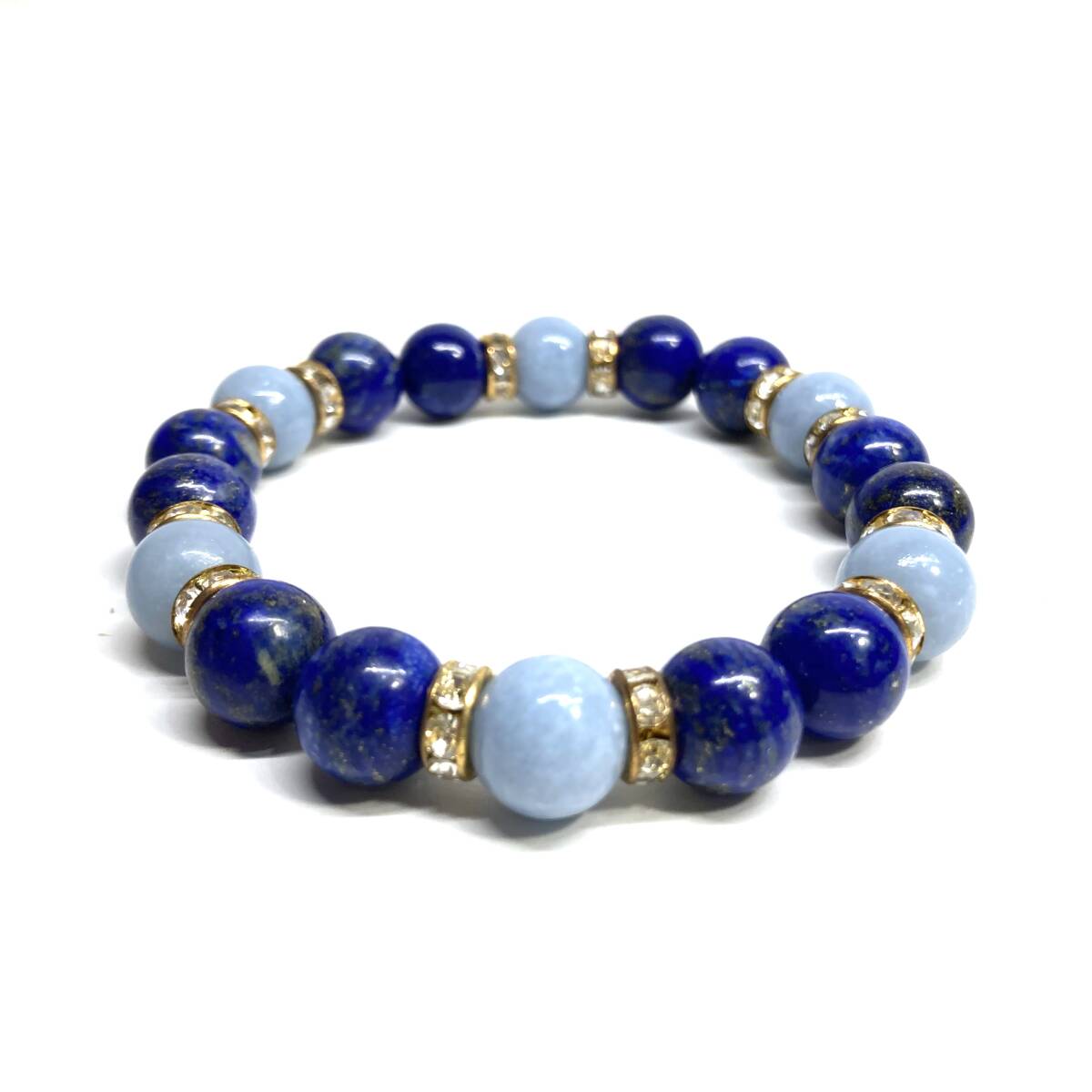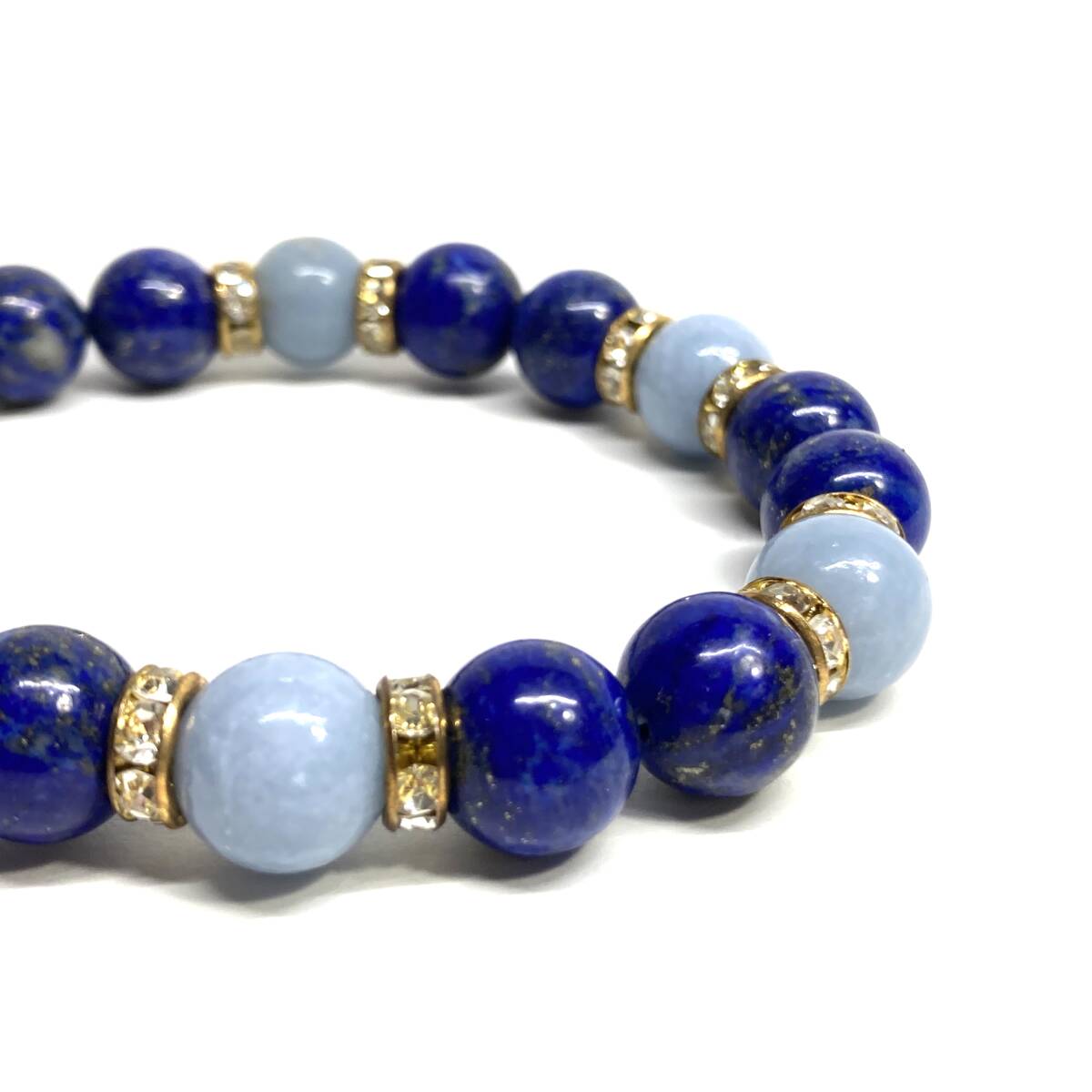 ラピスラズリ&エンジェライト パワーストーン ブレスレット 天然石ブレス (ゴールド) 10mm メンズ・レディース 癒し ☆