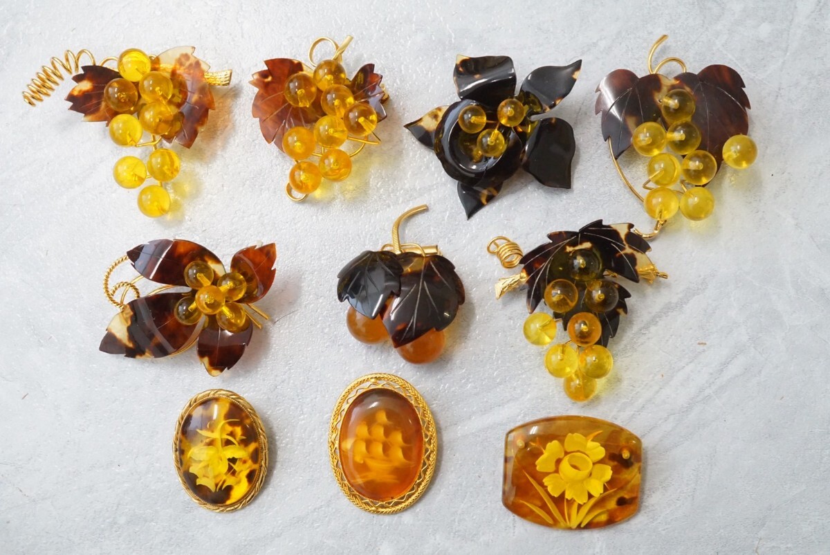 B472 本鼈甲 べっ甲 ブローチ 10点セット ヴィンテージ アクセサリー 大量 まとめて おまとめ まとめ売り 装飾品