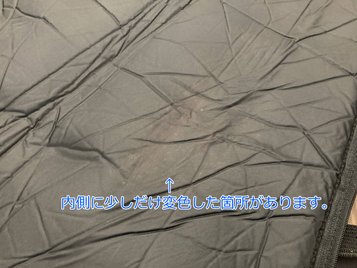 内側に一部少しだけ変色した箇所とロゴの近くにスレた跡がありますが、